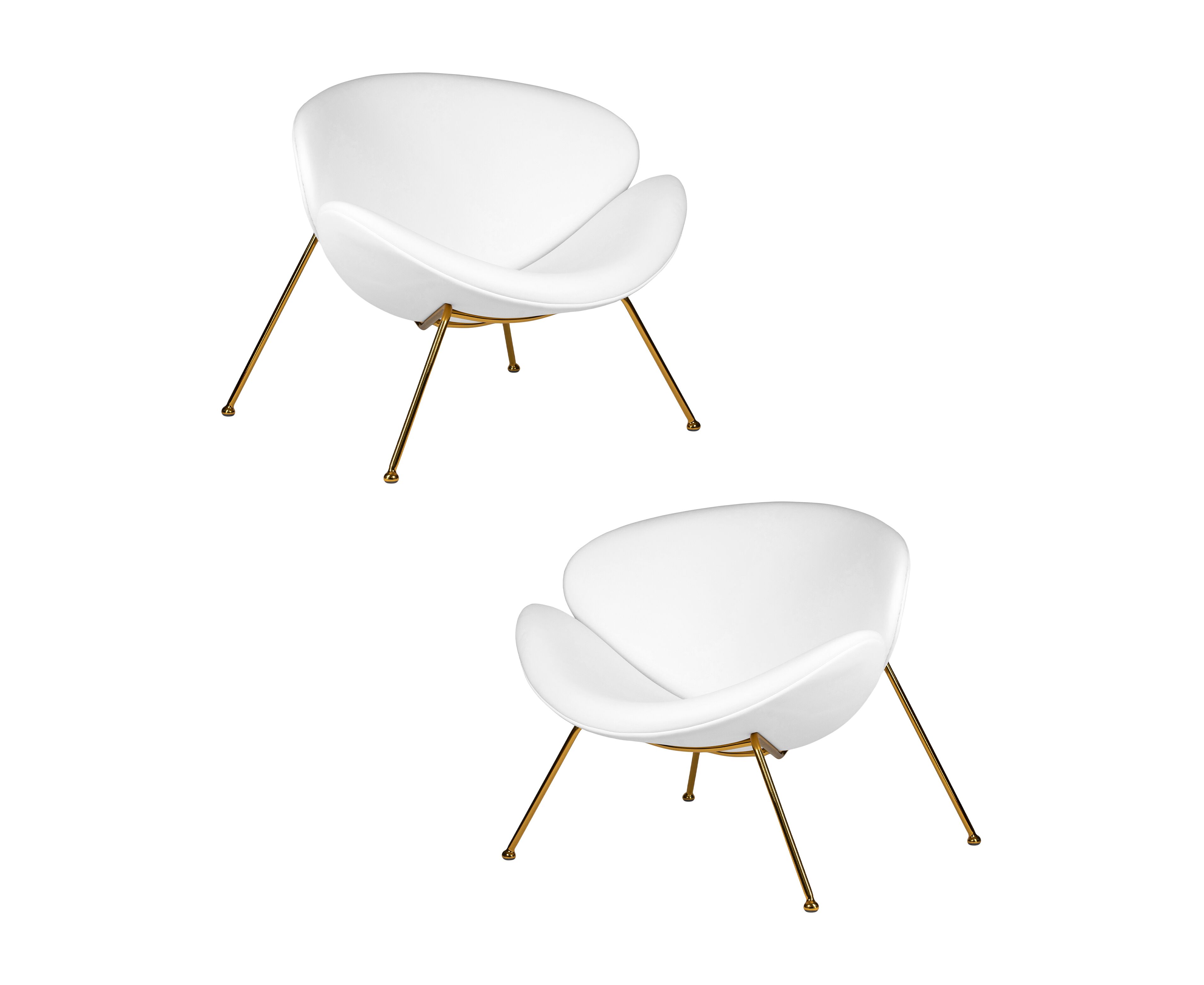 Набор 2 шт Кресло дизайнерское DOBRIN EMILY, белый винил YP17, золотое основание
