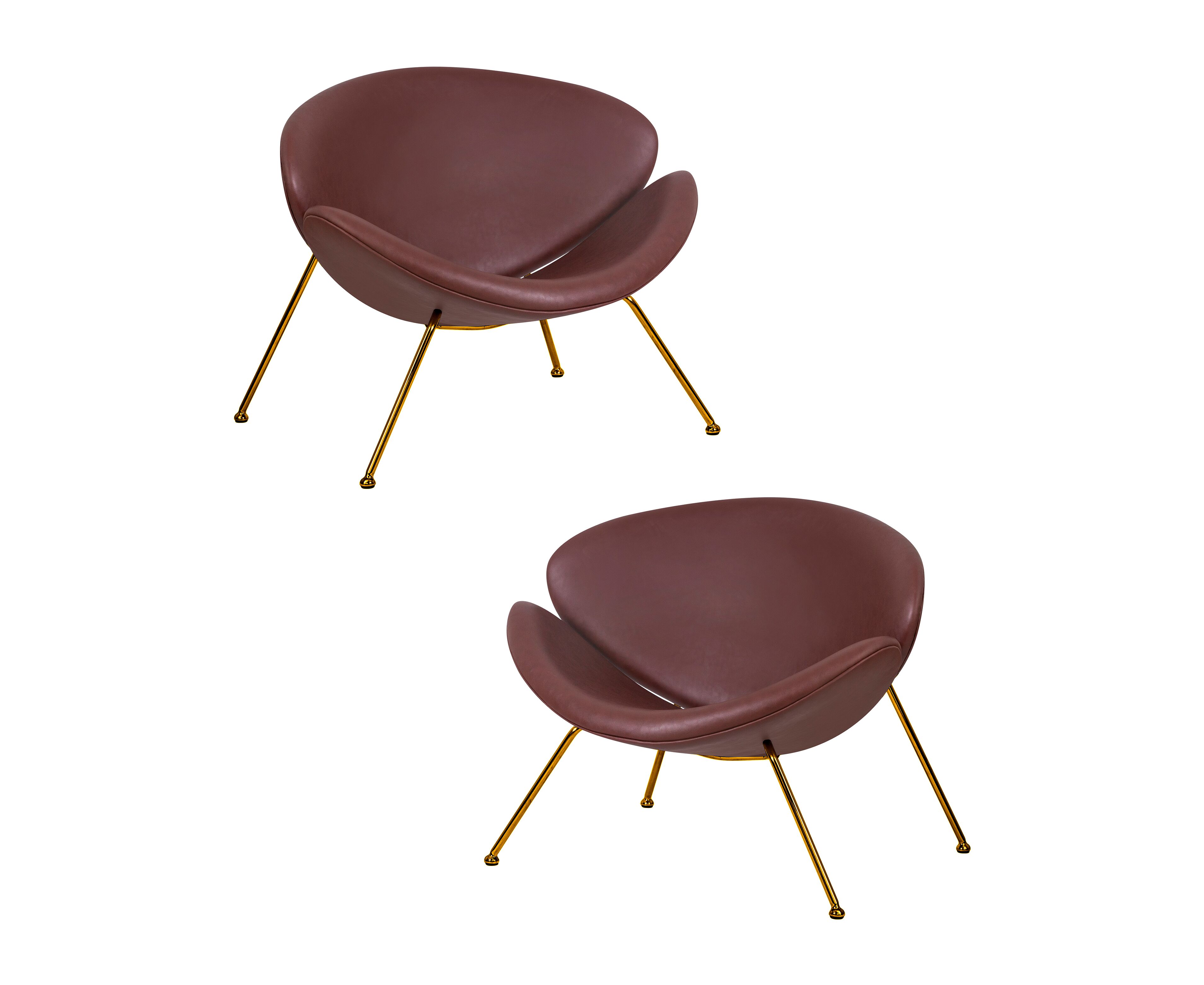 Набор 2 шт Кресло дизайнерское DOBRIN EMILY, коричневый винил YP5, золотое основание