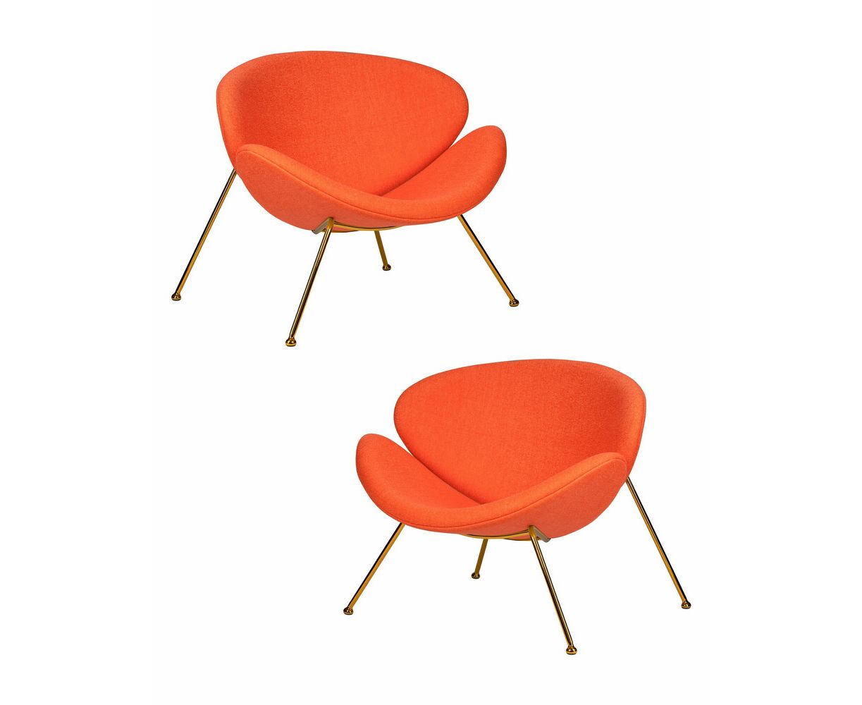 Набор 2 шт Кресло дизайнерское DOBRIN EMILY, оранжевая ткань AF, золотое основание