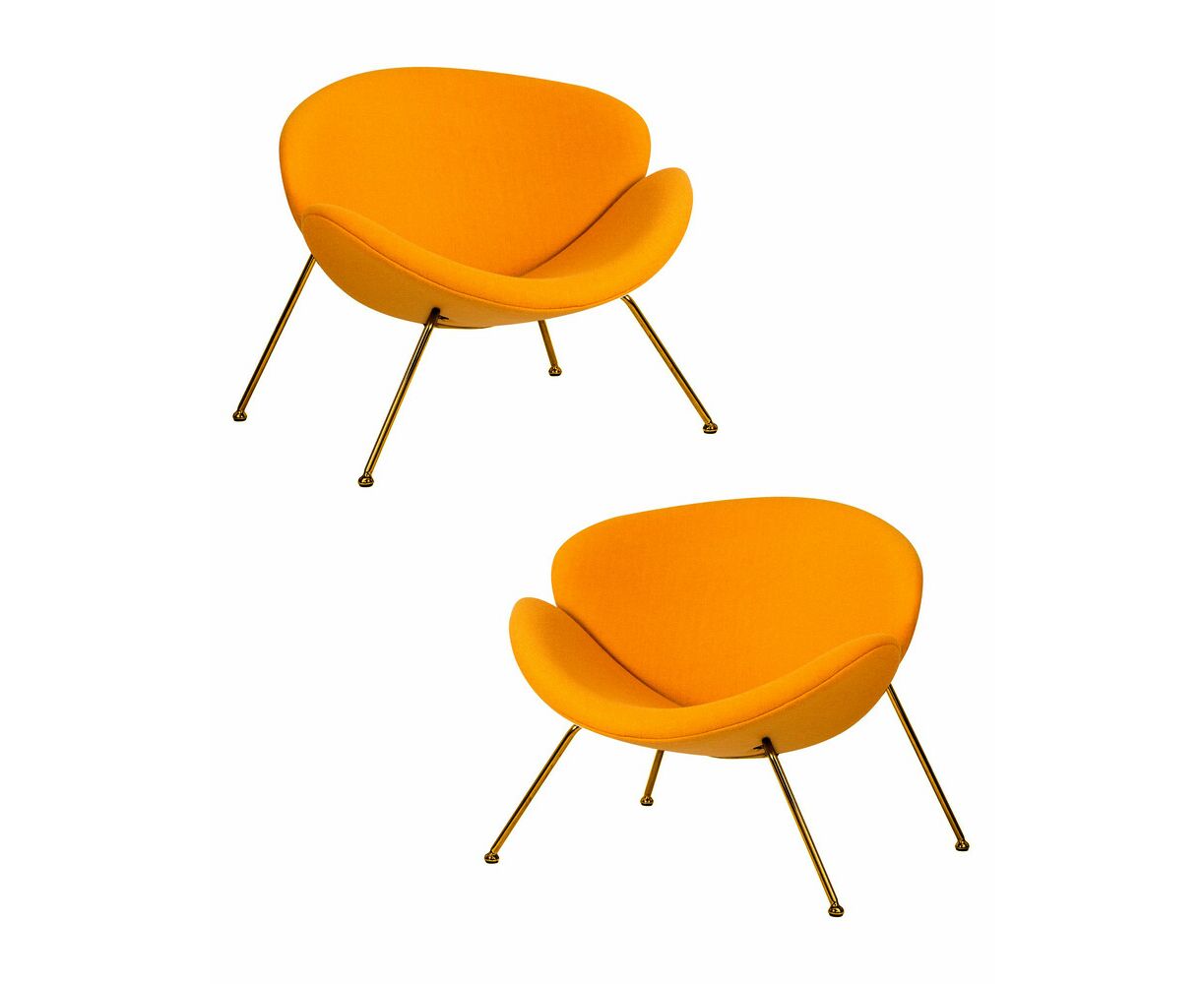 Набор 2 шт Кресло дизайнерское DOBRIN EMILY, желтая ткань AF13, золотое основание