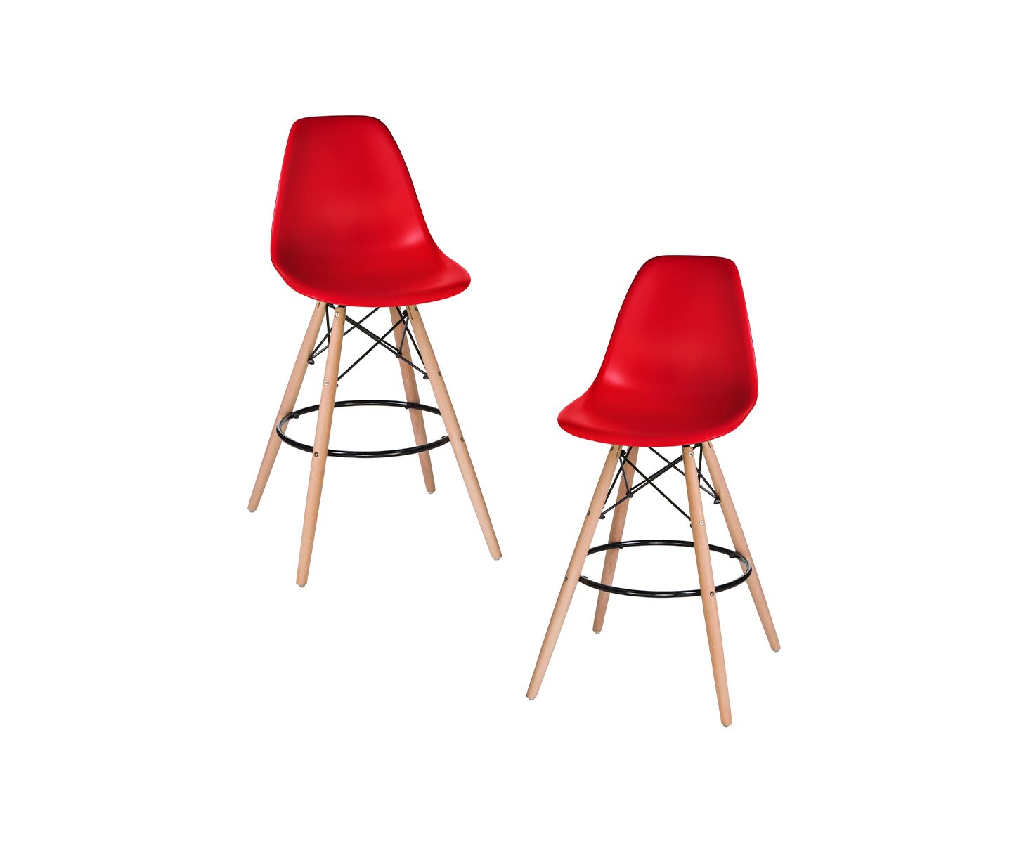 Набор 2 шт Стул барный DOBRIN DSW BAR, ножки светлый бук, цвет сиденья красный (R-02)