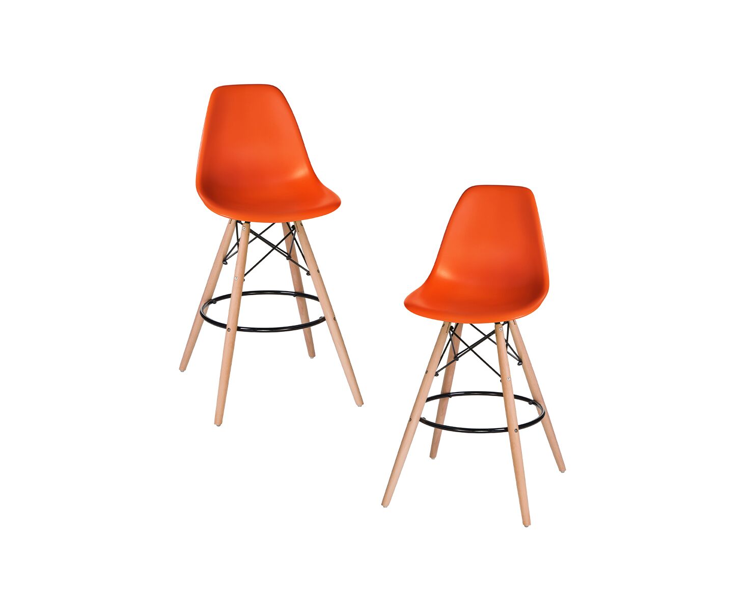 Набор 2 шт Стул барный DOBRIN DSW BAR, ножки светлый бук, цвет сиденья оранжевый (O-02)