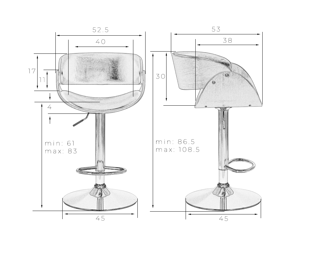 Набор 2 шт Стул барный DOBRIN JOHN, цвет сиденья черный глянец PU ABD 002