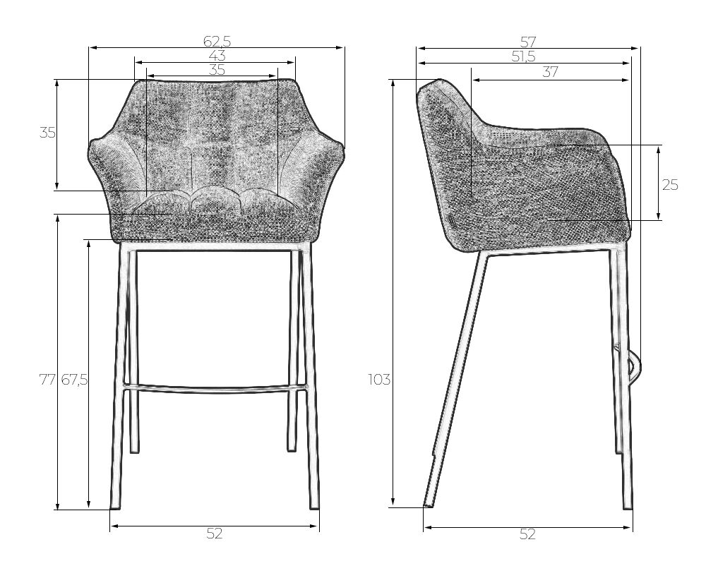 Набор 2 шт Стул барный DOBRIN LUCAS, серая ткань (F-22)