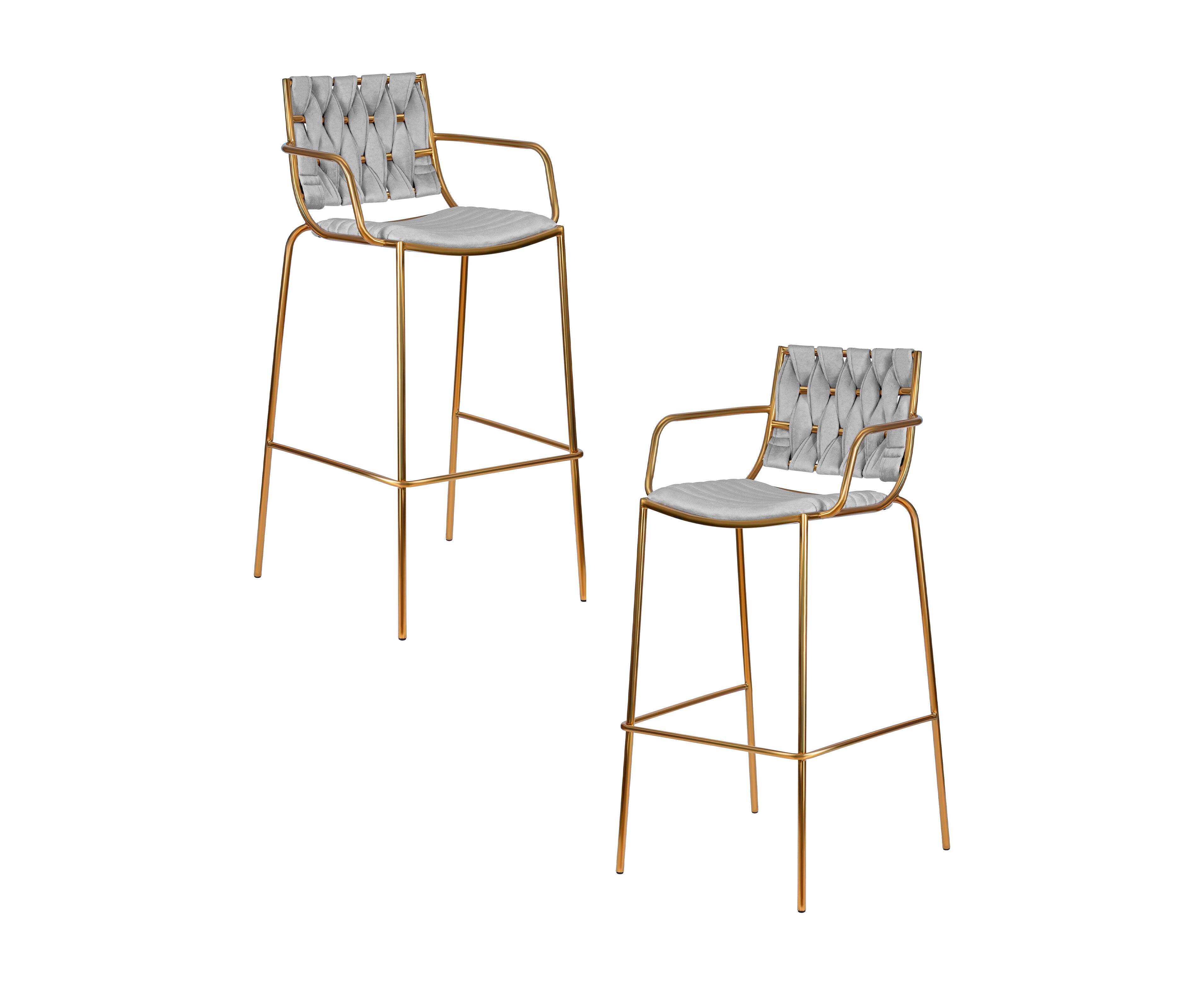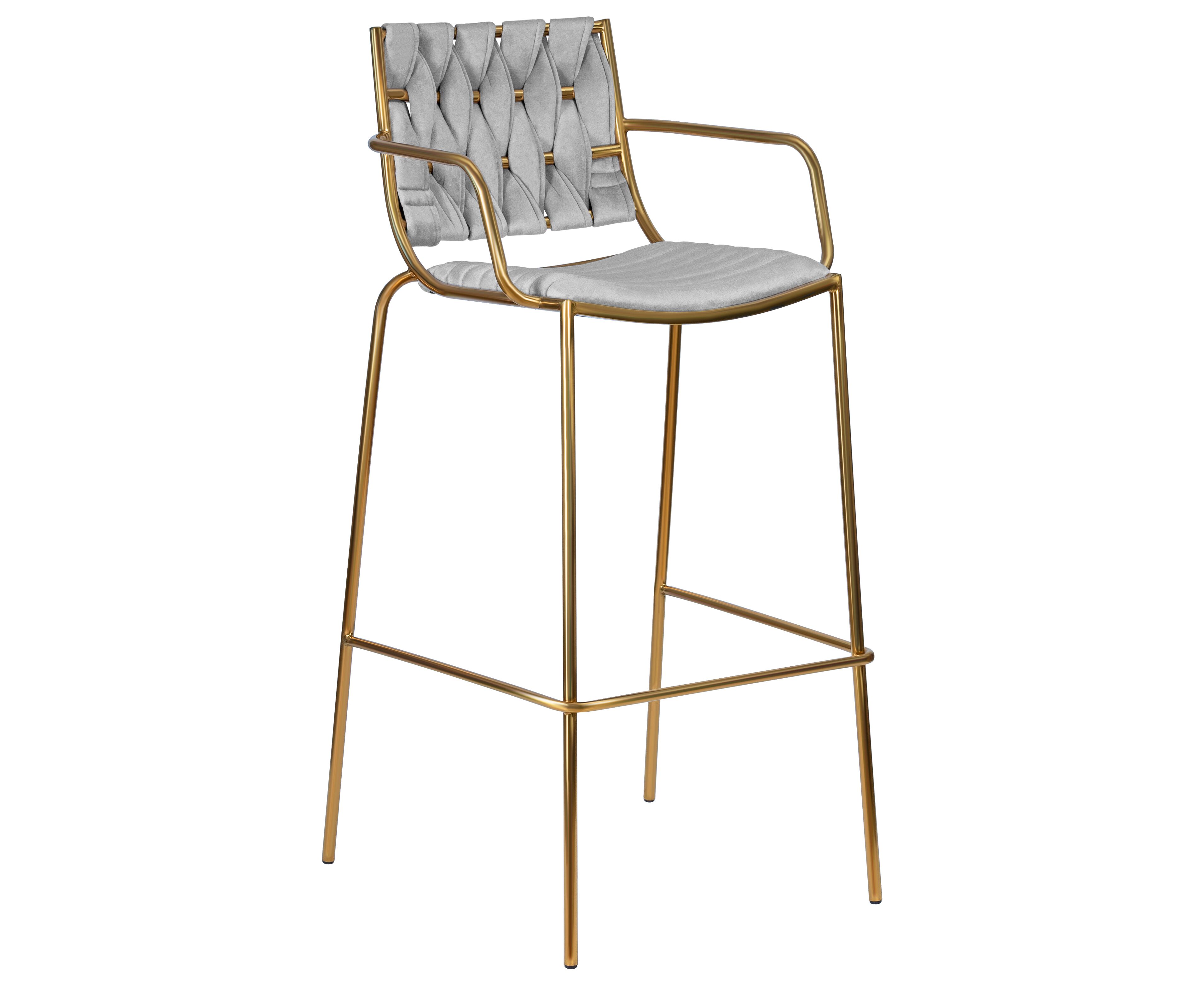 Набор 2 шт Стул барный DOBRIN MILLER GOLD, cветло-серый велюр (135-37)