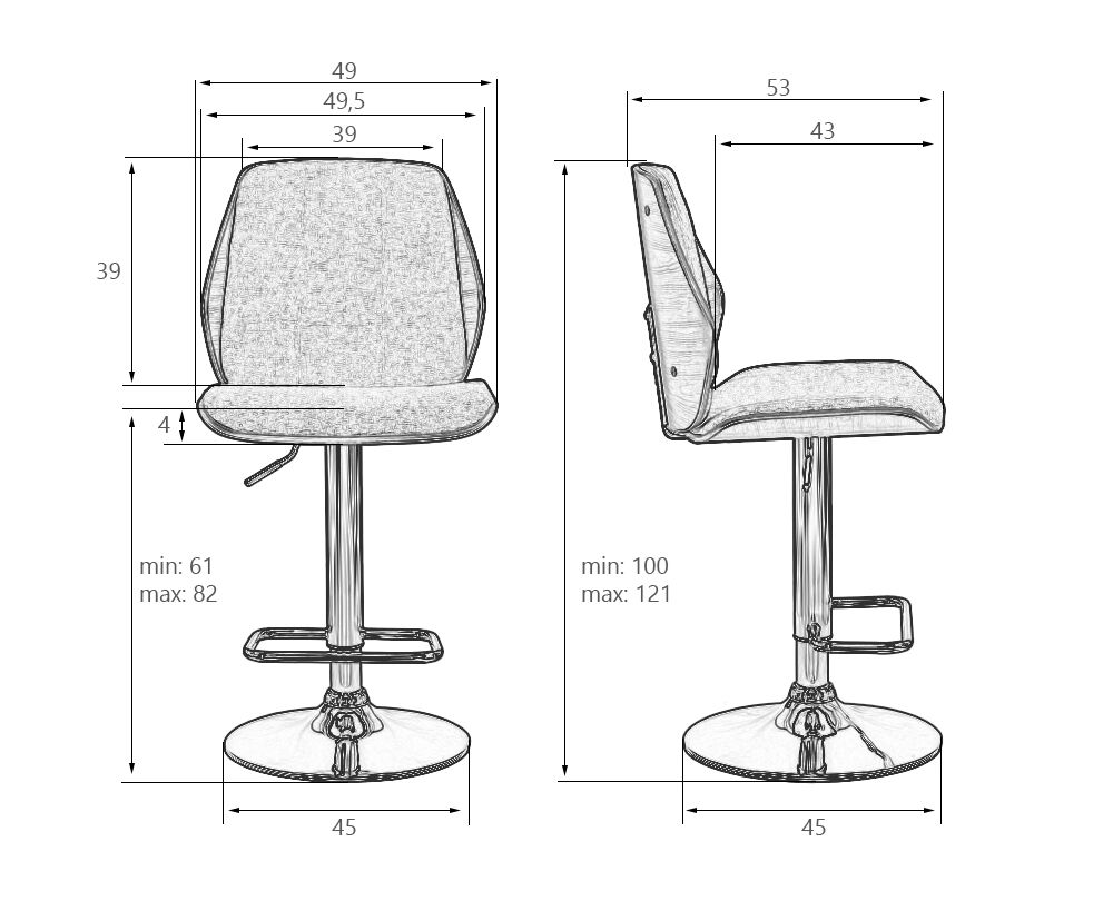 Набор 2 шт Стул барный DOBRIN PETER, серая ткань AAA 001