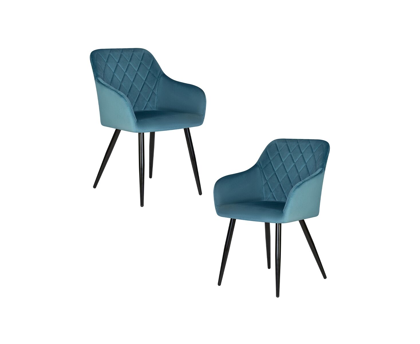 Набор 2 шт Стул обеденный DOBRIN ROBERT, черные матовые ножки, велюр V108-108 Морская волна