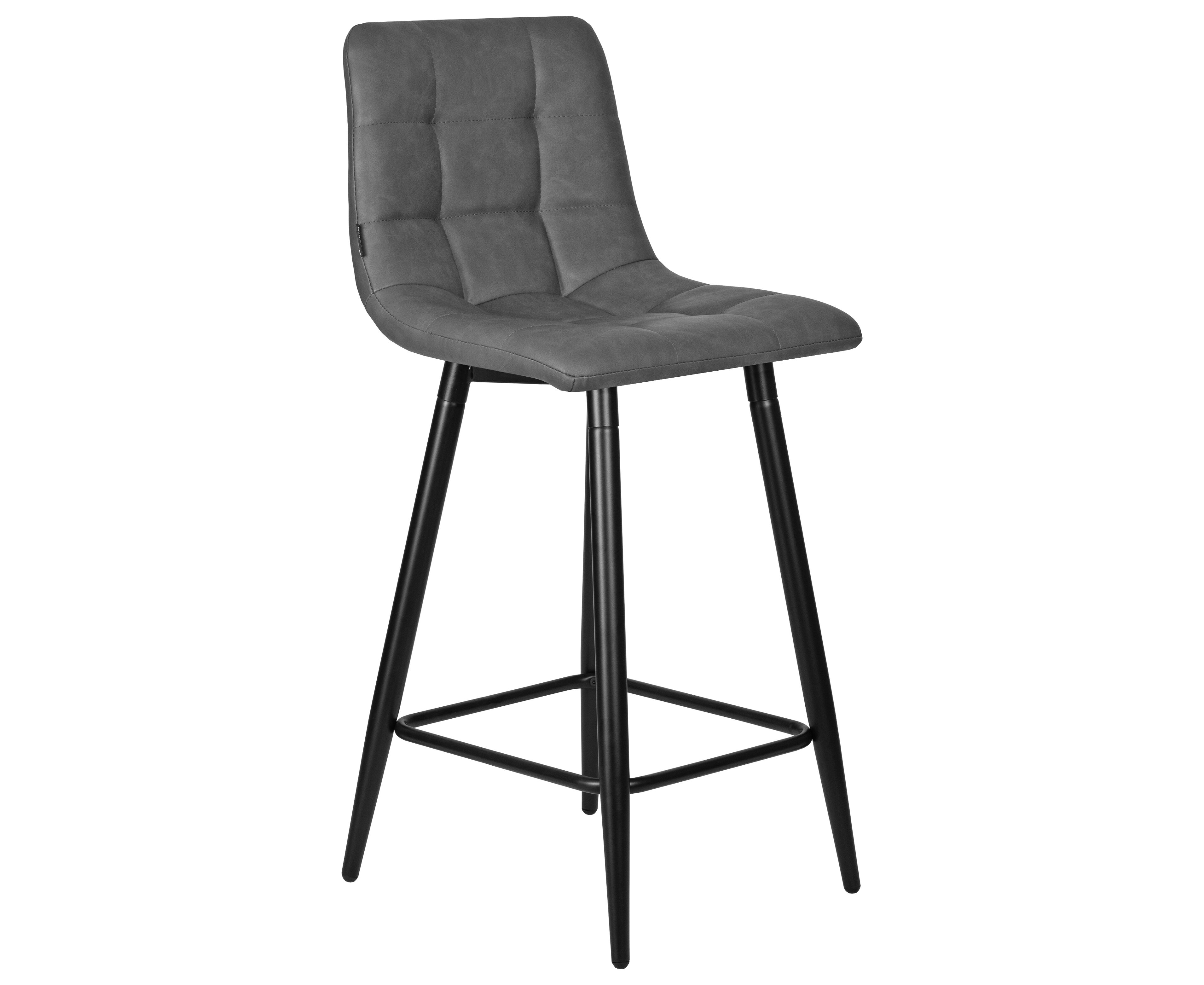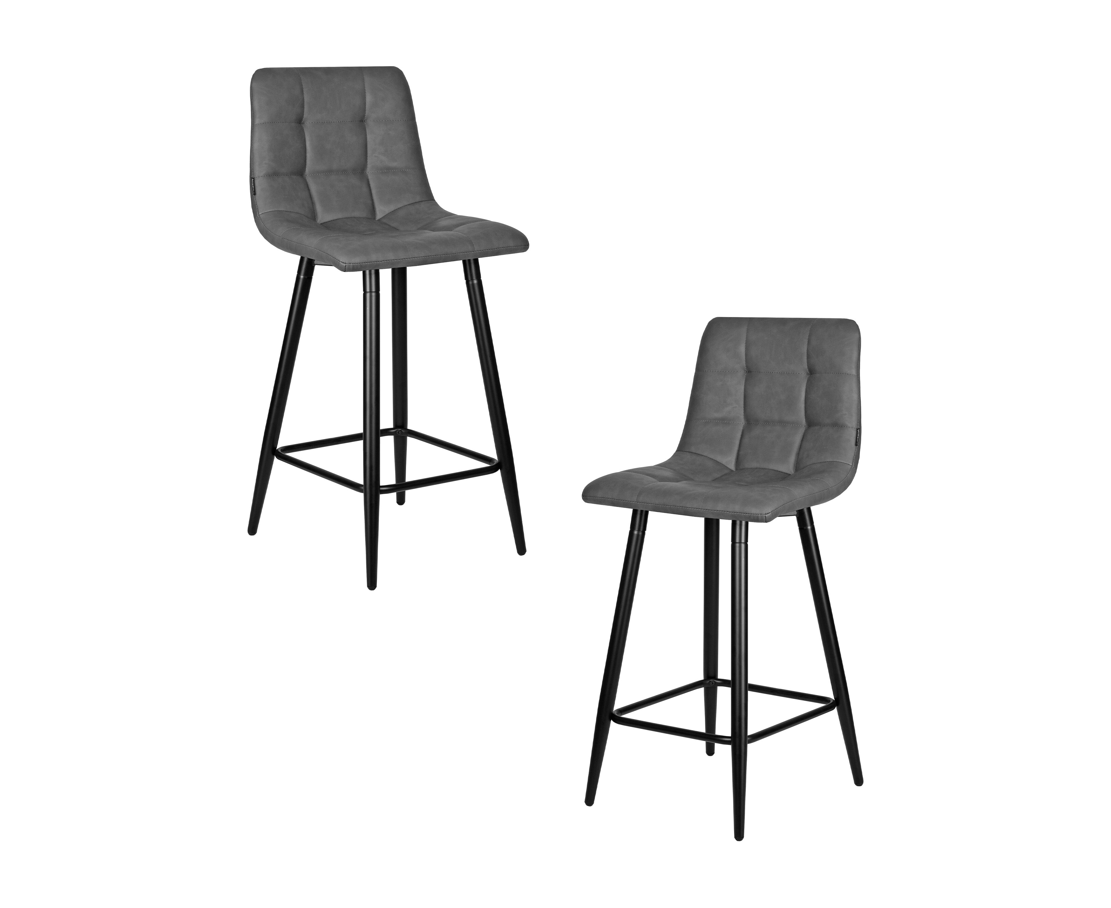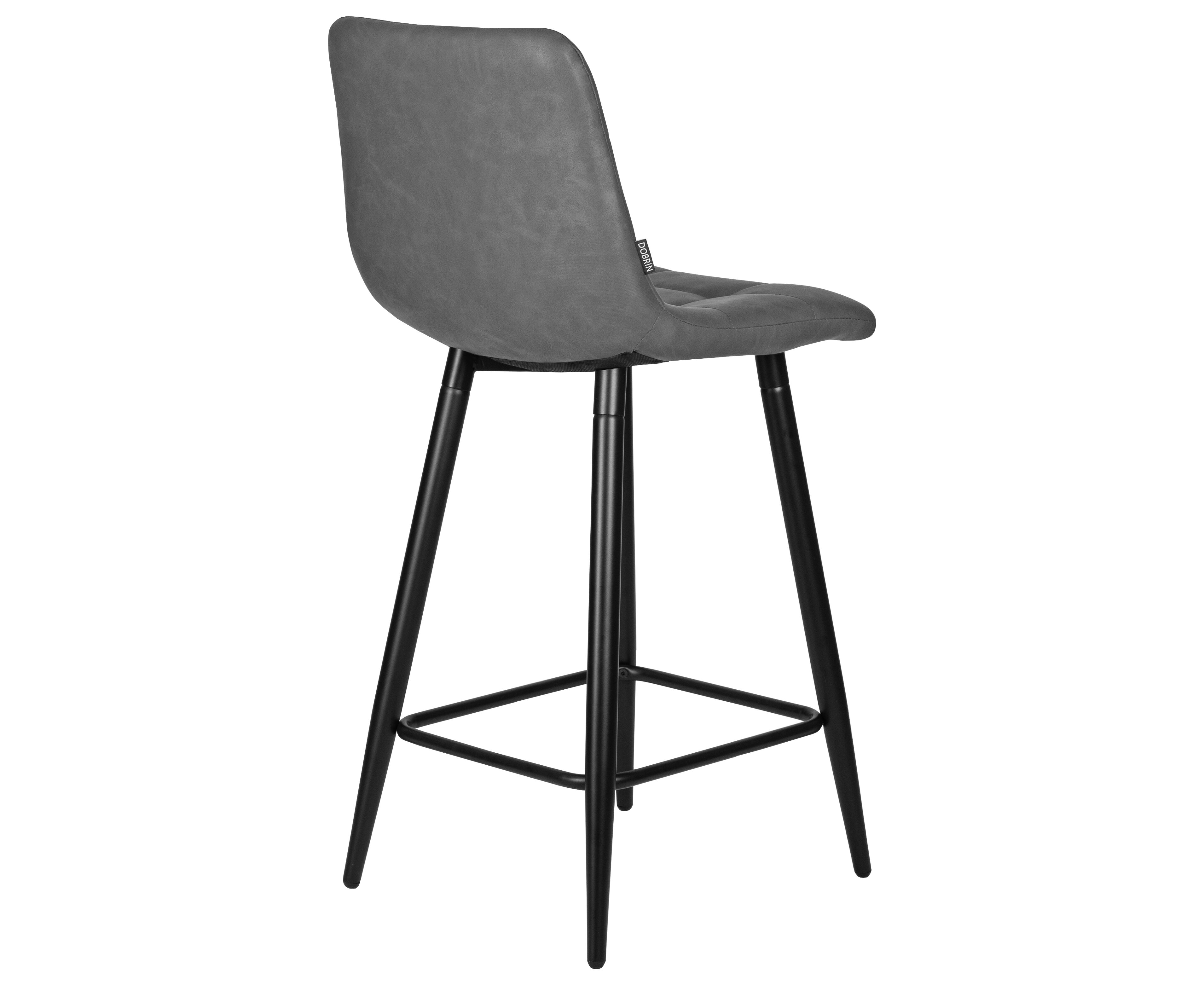 Набор 2 шт Стул полубарный DOBRIN OLIVIA, черные матовые ножки, серая антрацитовая винтажная экокожа (RU-08)