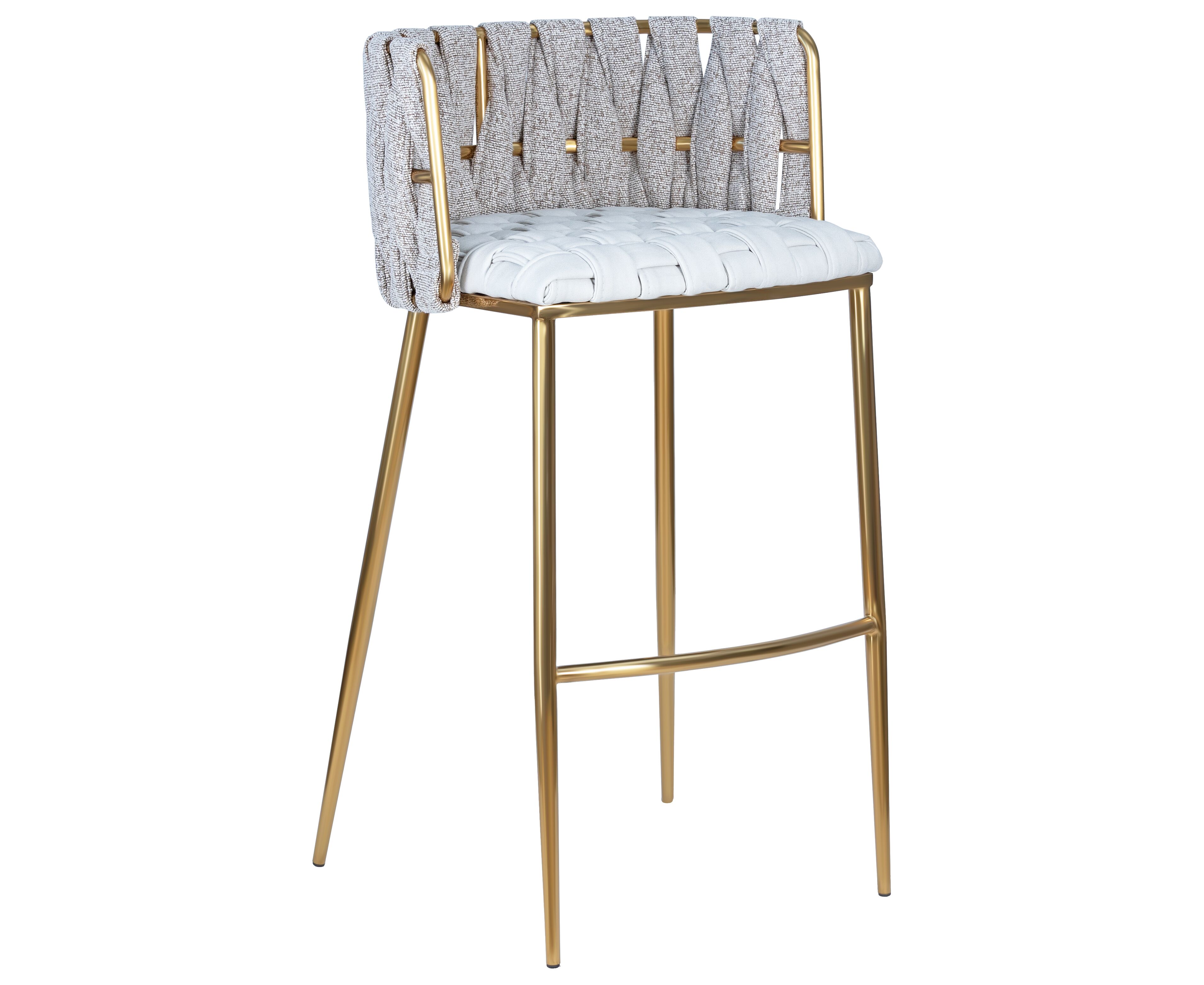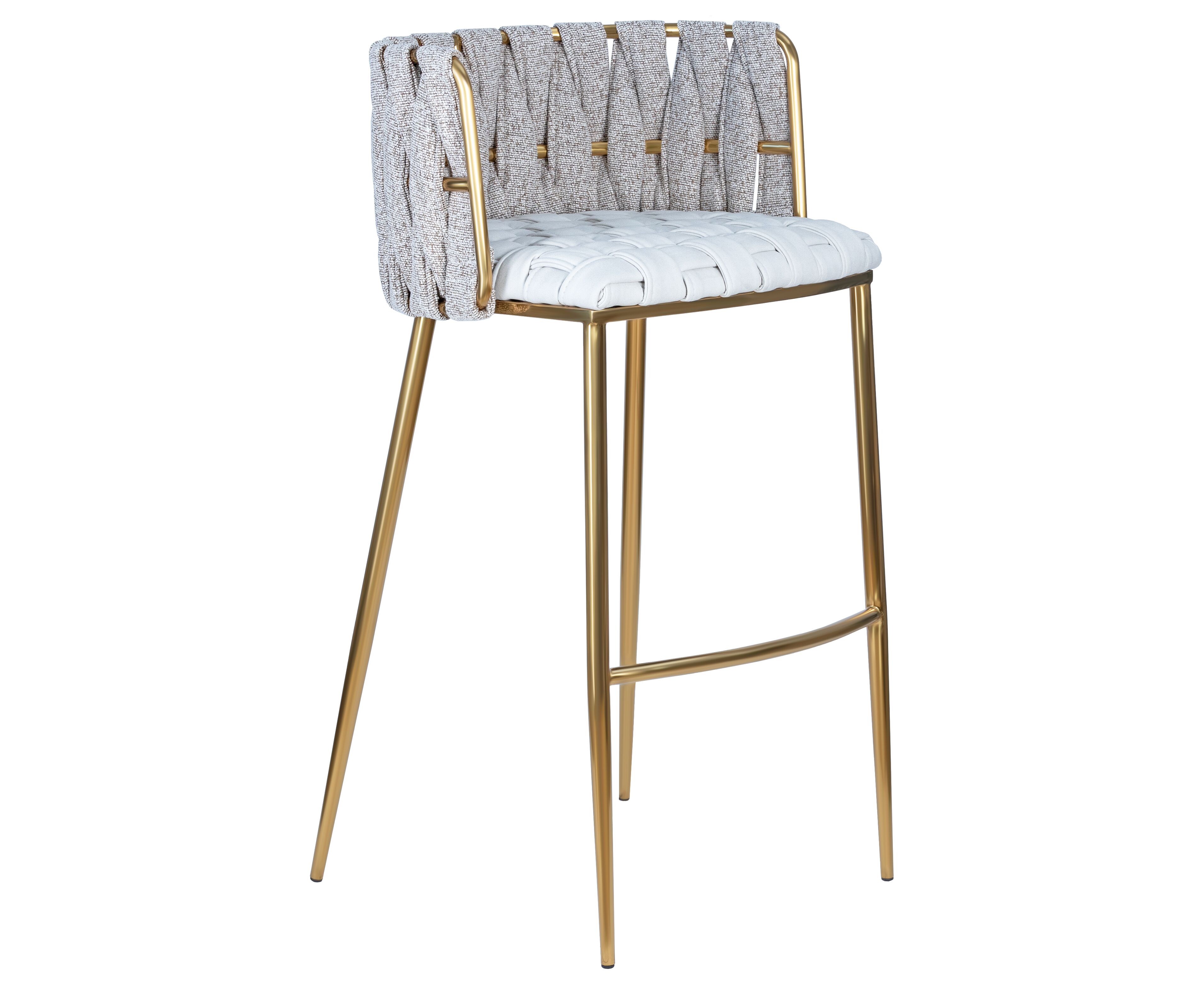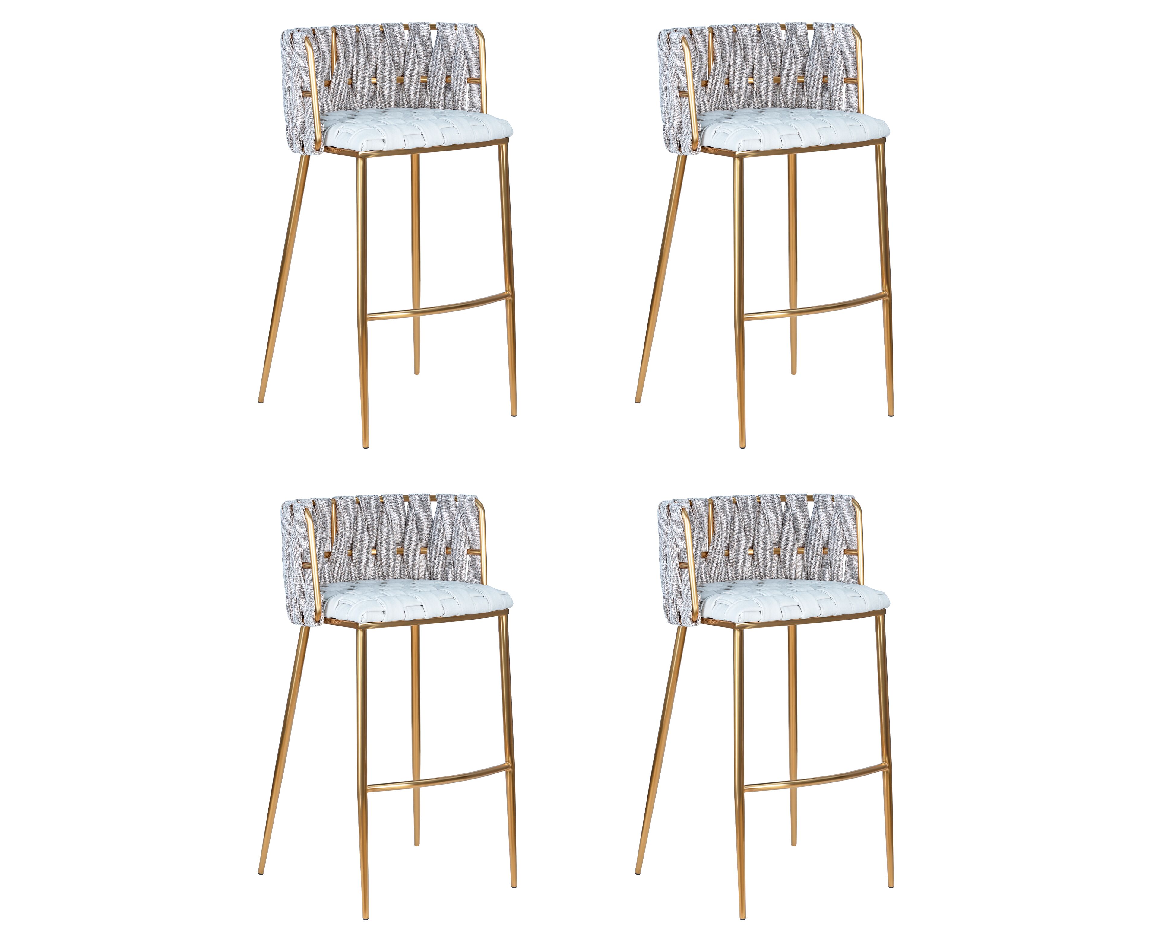 Набор 4 шт Стул барный DOBRIN EMMA GOLD, белый PU (T-01), белая ткань (F-49)