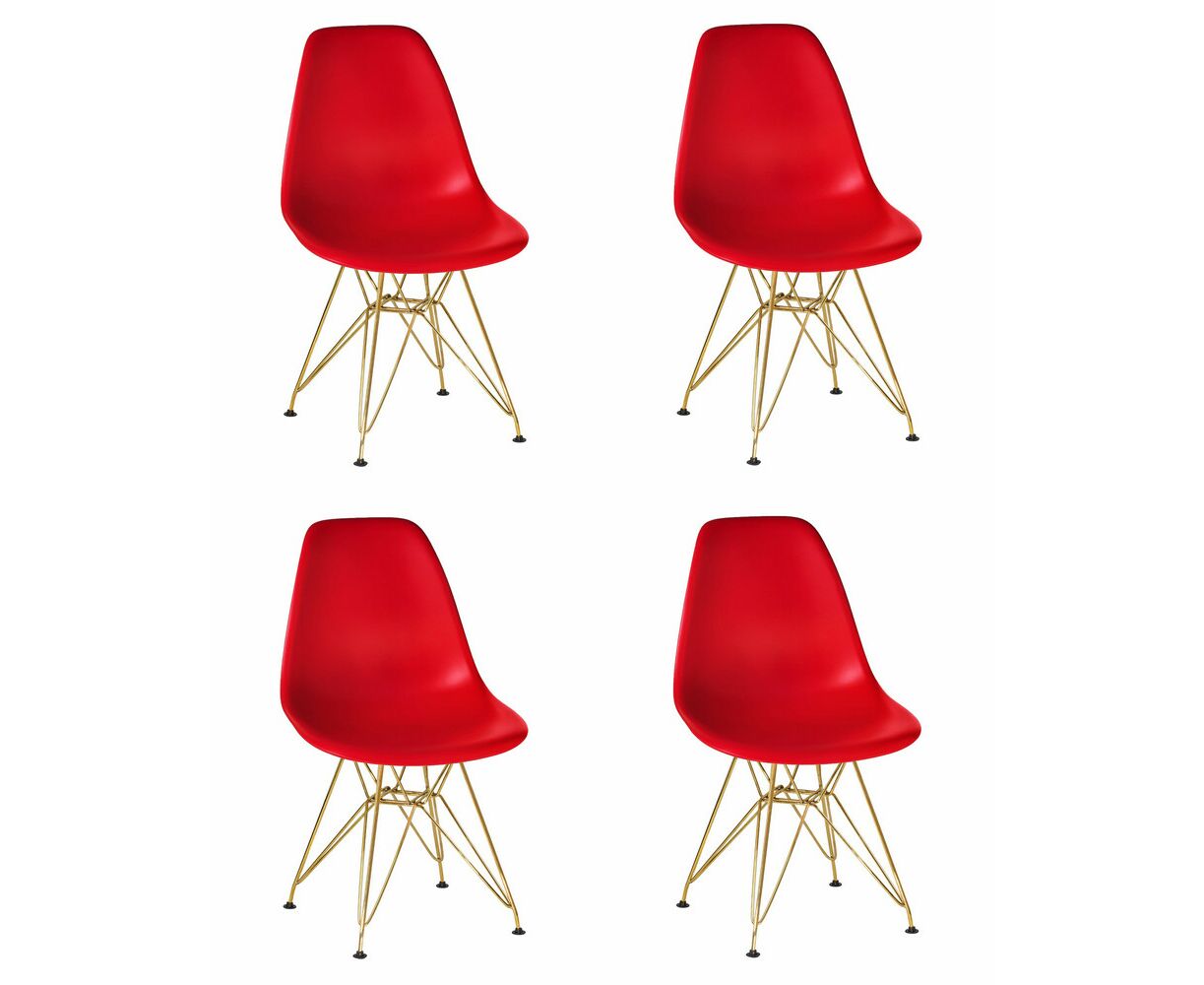Набор 4 шт Стул обеденный DOBRIN DSR, ножки золотые, цвет красный (R-02)