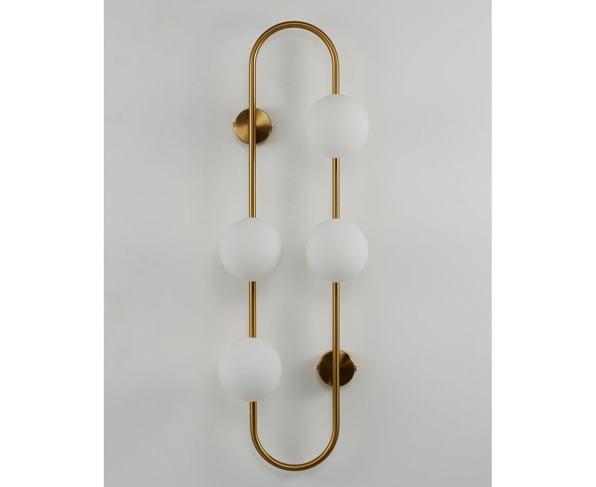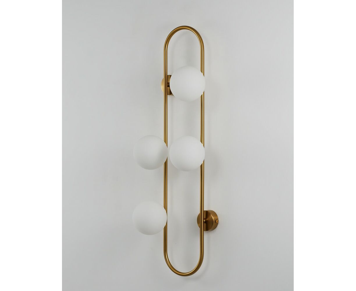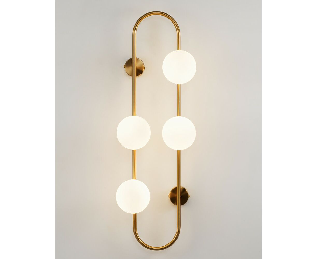 Оригинальный настенный светильник Krona станет идеальным световым акцентом в любом современном интерьере. Сферичные плафоны из матового стека мягко рассеивают свет. Металлический каркас с закруглёнными углами дополняет форму всей композиции. Бра надёжно крепится к стене с помощью 4-х крепежных планок, высота всей конструкции составляет 72 см. В качестве основного источника света используются лампы с цоколем G9.