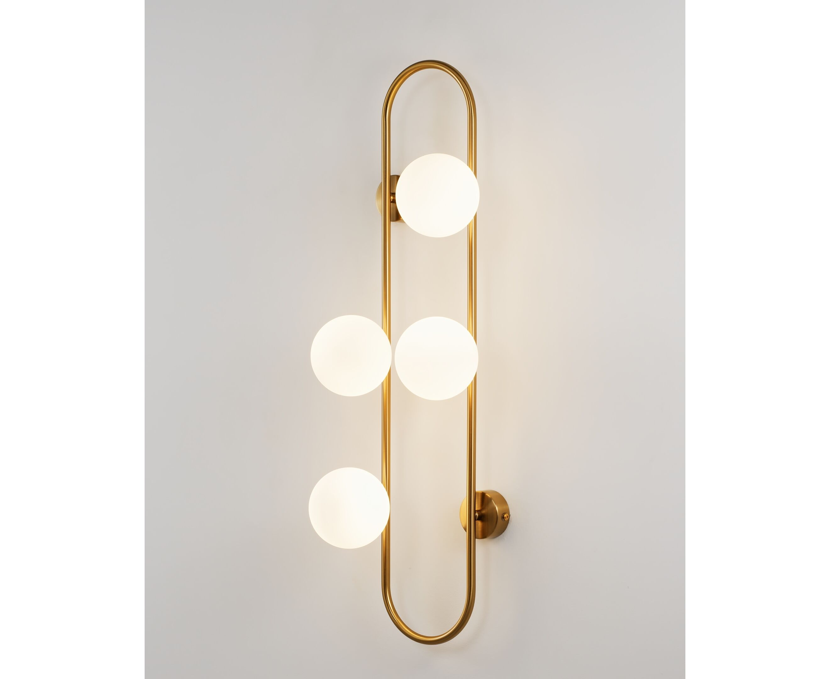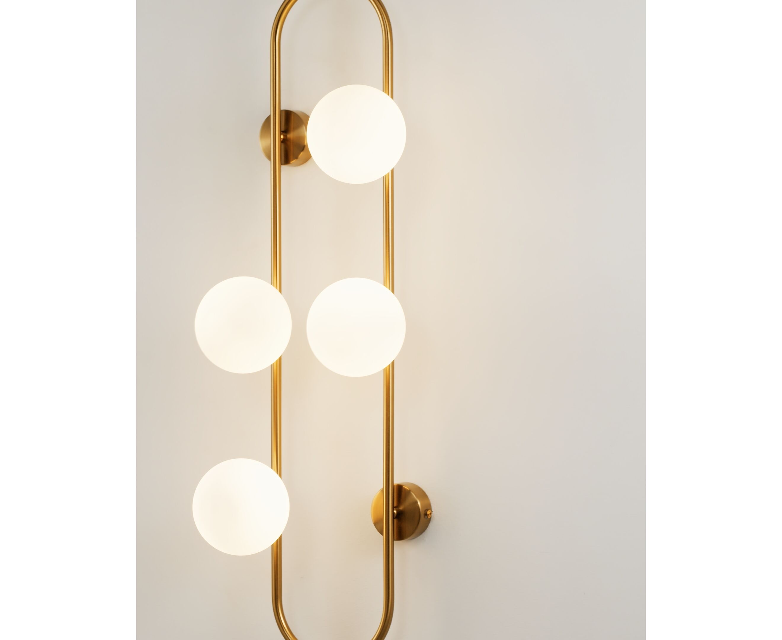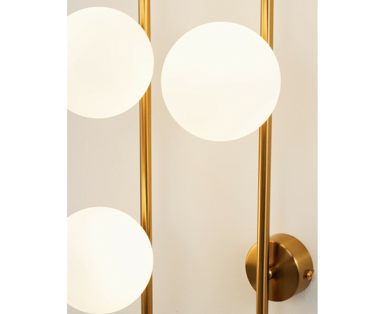 Оригинальный настенный светильник Krona станет идеальным световым акцентом в любом современном интерьере. Сферичные плафоны из матового стека мягко рассеивают свет. Металлический каркас с закруглёнными углами дополняет форму всей композиции. Бра надёжно крепится к стене с помощью 4-х крепежных планок, высота всей конструкции составляет 72 см. В качестве основного источника света используются лампы с цоколем G9.