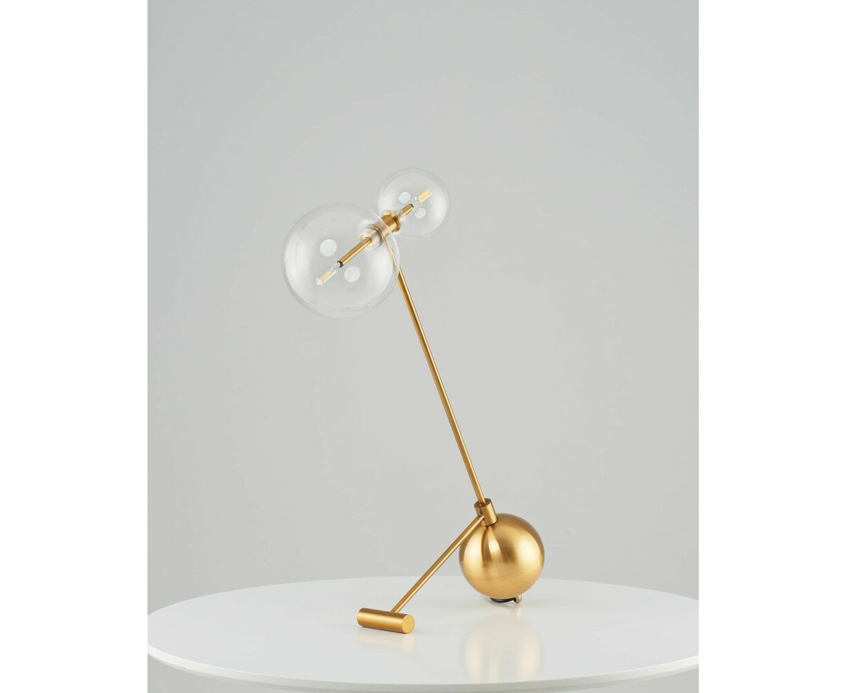 Оригинальная настольная лампа Bizet. В любом современном интерьере лампа не останется без внимания. Необычный дизайн достигается за счет конструкции. Гармонично сочетаются прозрачные плафоны разного диаметра и металлический каркас латунного цвета. В качестве источника освещения подойдут лампы с цоколем G4. Креативное дополнение для зала, гостиной или рабочего кабинета.