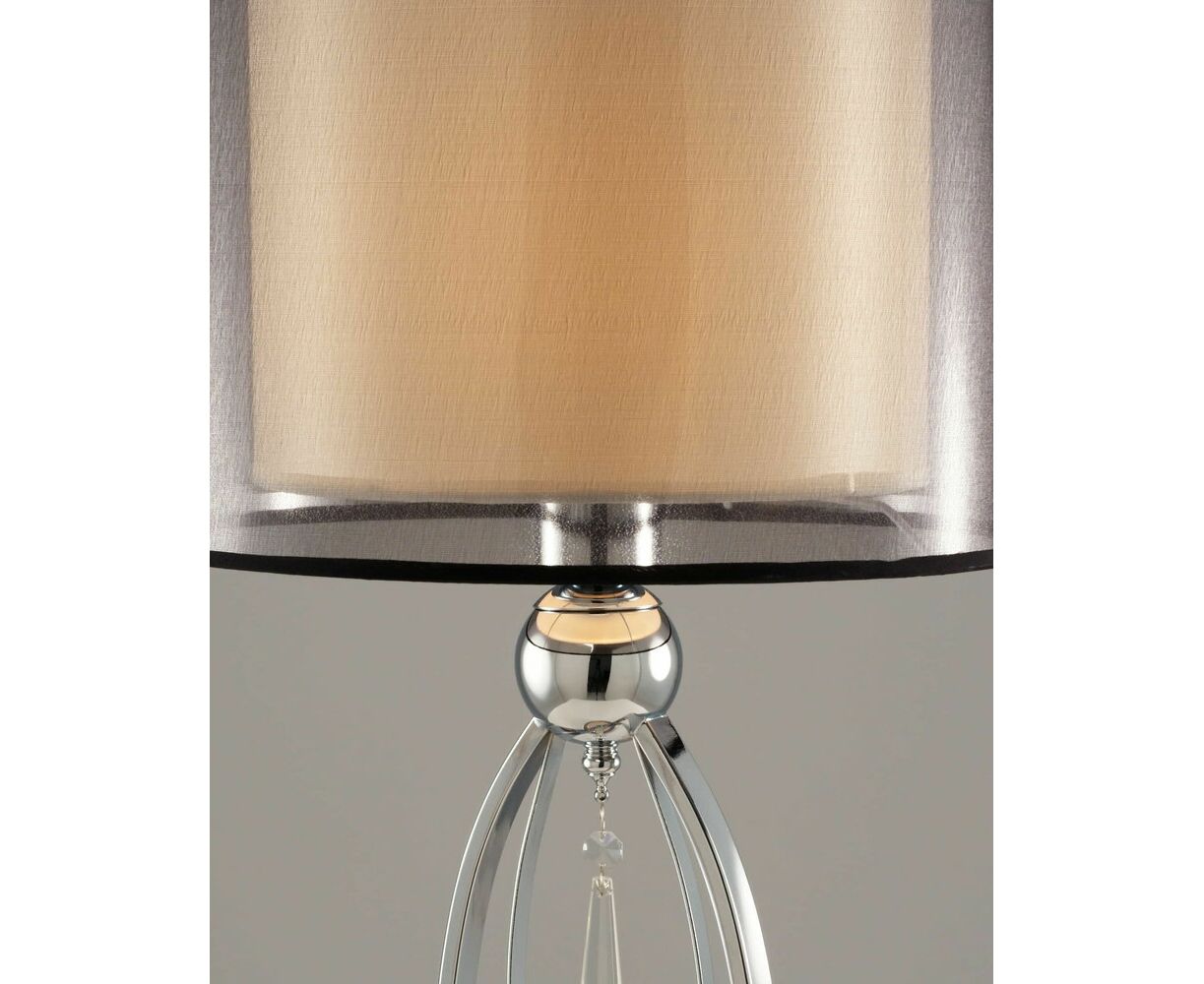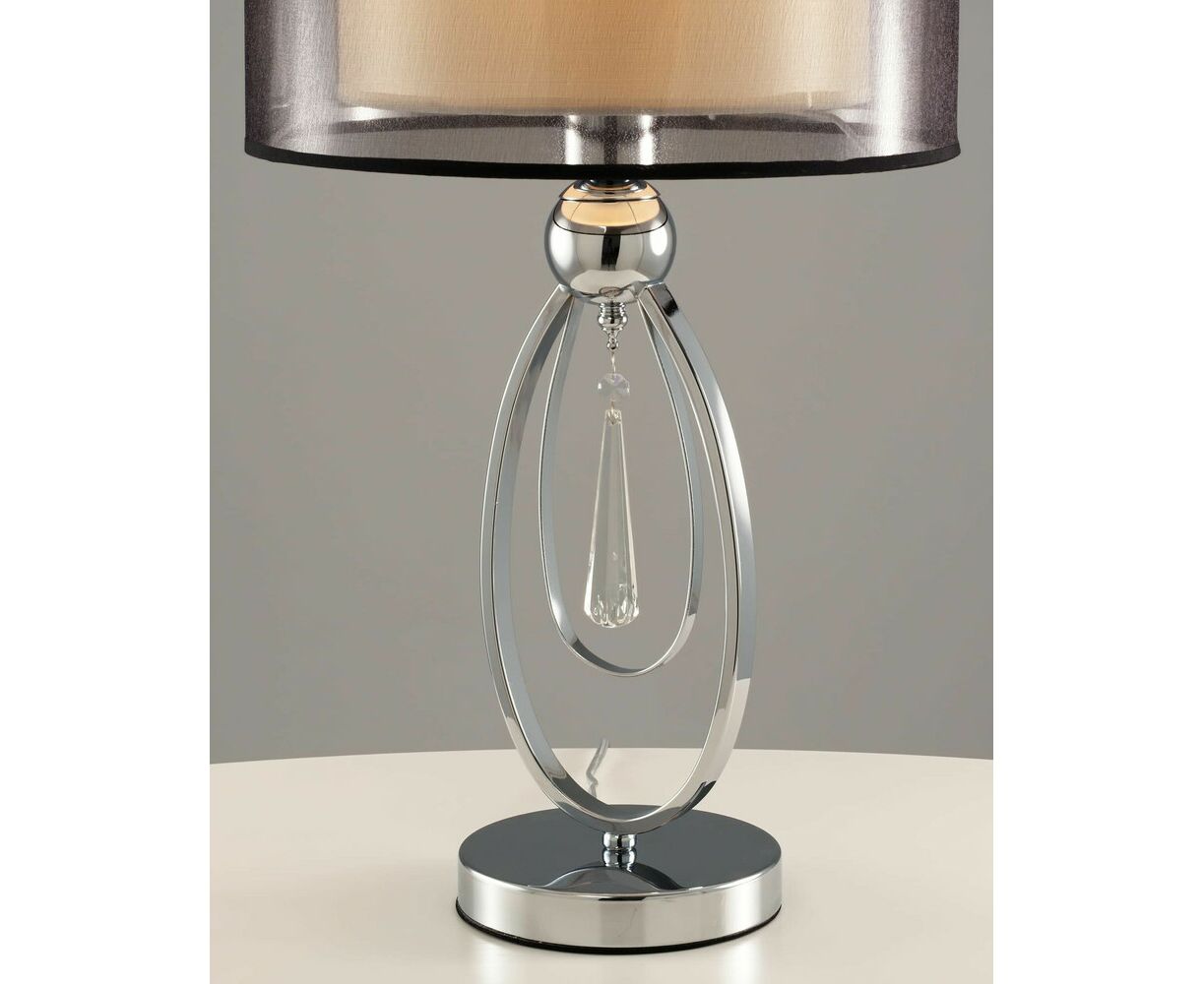 Настольная лампа из коллекции Dark от итальянского бренда Moderli. Абажур имеет два слоя ткани, внутренняя светлая ткань мягко рассеивает свет, а внешняя тёмная приглушает её и создаёт расслабляющую обстановку. Каркас выполнен из металла цвета хром и декорирован каплевидным камнем. Дизайн светильника из объёмных фигур и гибких линий подчеркнёт любой современный интерьер.