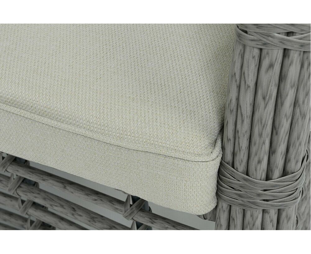 Ручное круглое плетение является основным декоративным элементом мебели. Оно выполнено из искусственного ротанга в сером цвете.