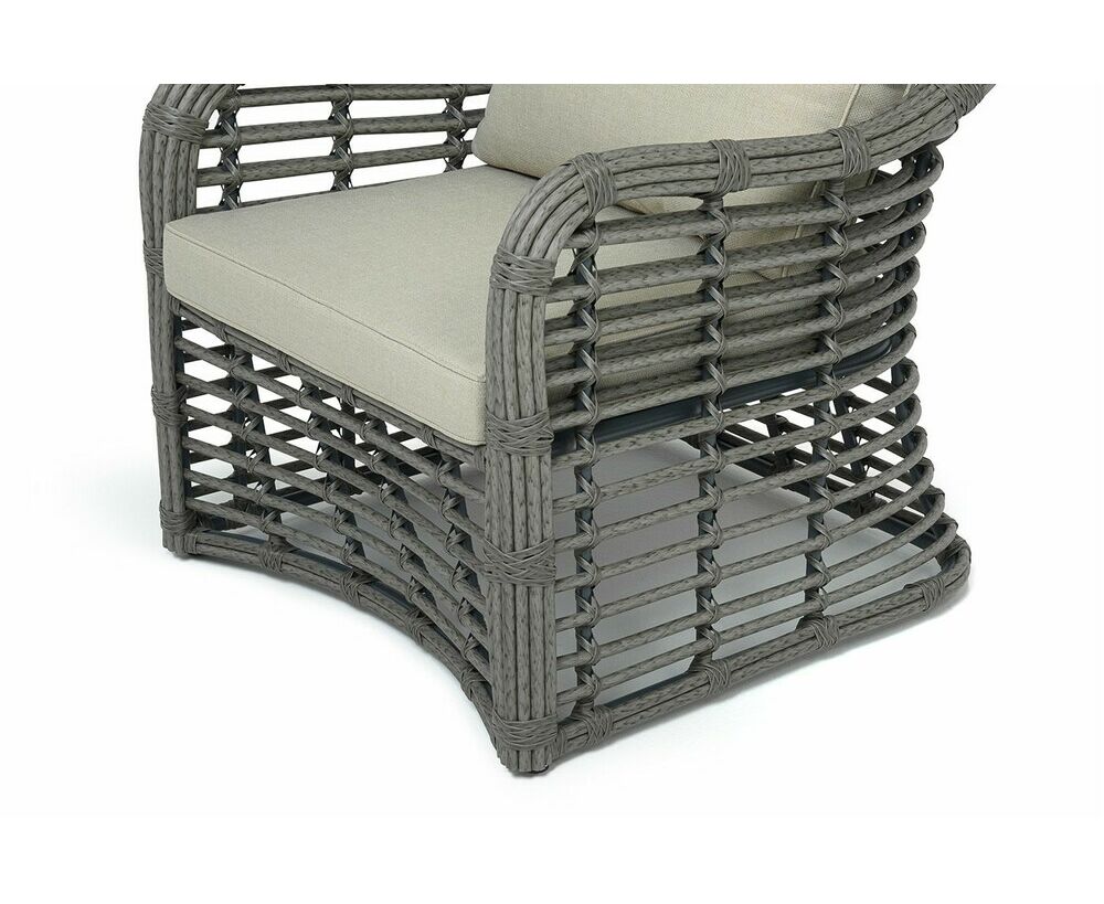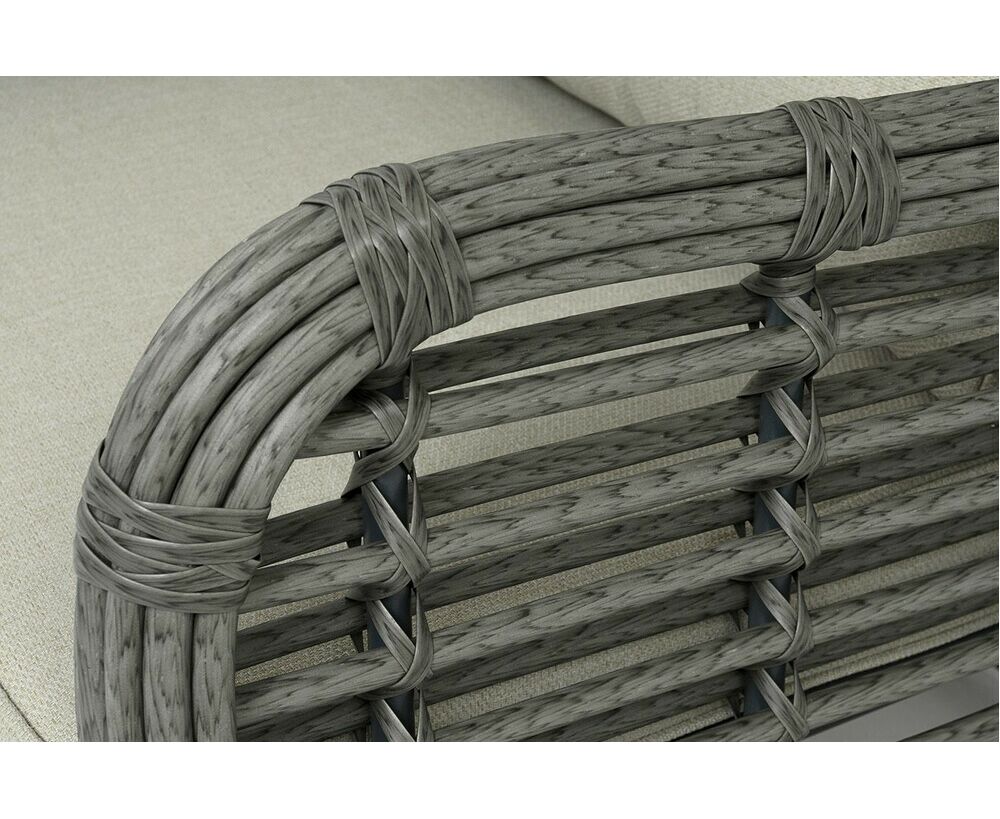 Каркас мебели сделан из прочного алюминия с высокими эксплуатационными качествами. Оплетен вручную с помощью круглого искусственного ротанга. Представлено в сером оттенке.