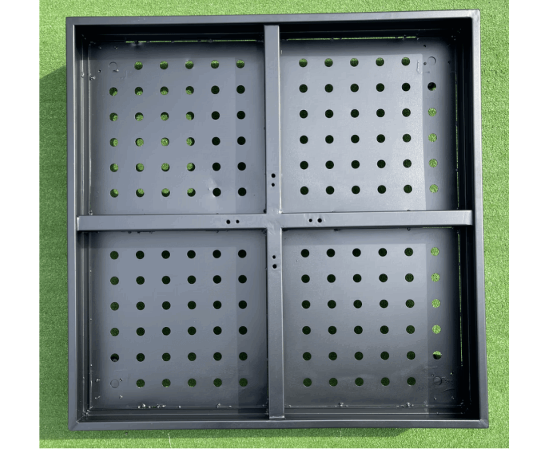 Основание квадратное для зонта «Римини» с 4-мя вращающимися колесиками, весит 145-150 кг при заполнении камнем.