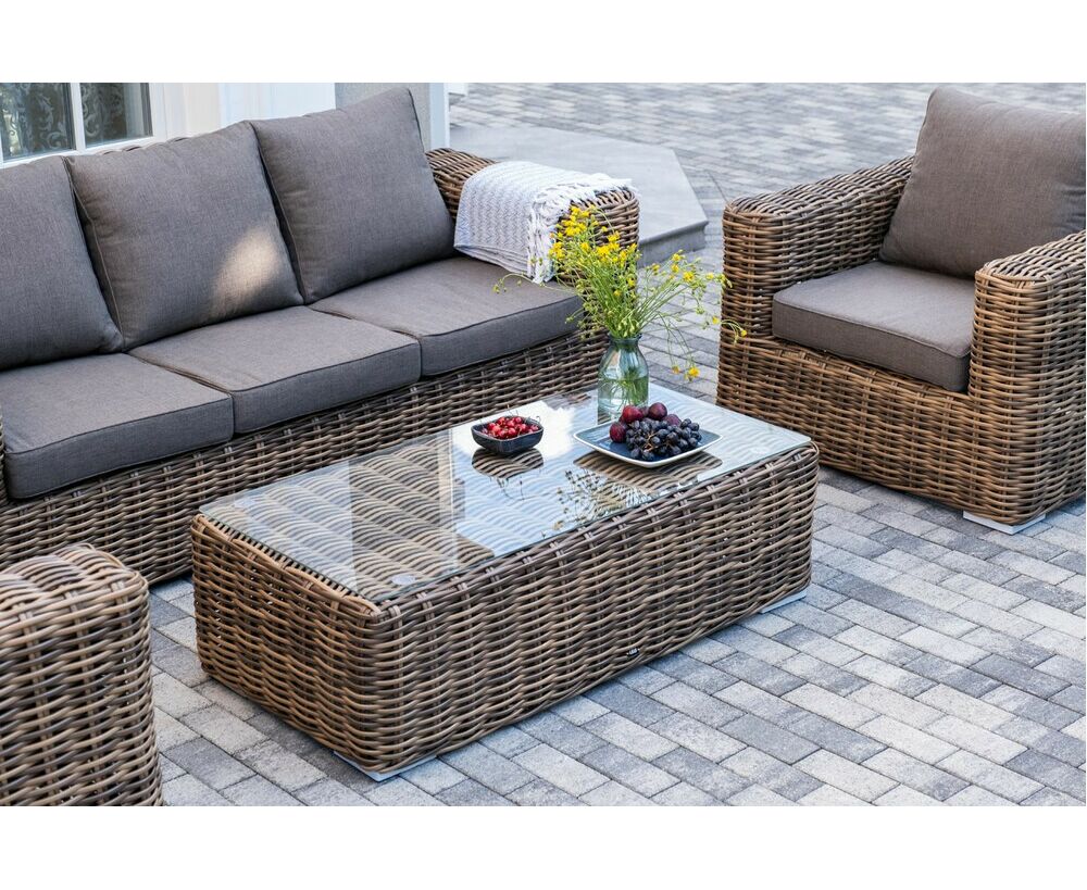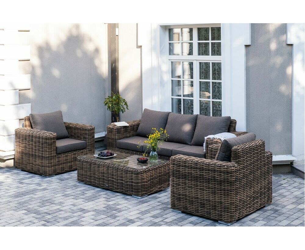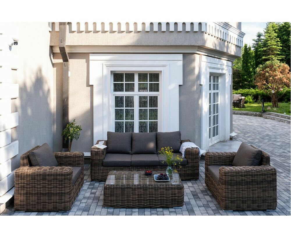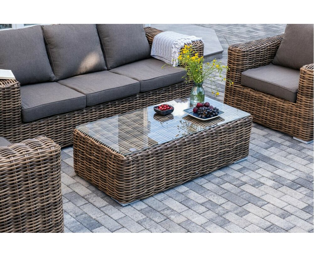 Каркас столика изготовлен из алюминия, вручную оплетенного круглым искусственным ротангом. Столешница из закаленного стекла толщиной 5 мм. Благодаря износостойким материалам, стол пригоден для использования на улице при любой погоде и не требует специальных условий хранения. "Палермо" диван из искусственного ротанга трехместный, цвет соломенный 1шт. 2 300Х940Х840, "Палермо" кресло из искусственного ротанга, цвет соломенный 2шт. 1 060Х940Х840, "Палермо" журнальный столик из искусственного ротанга, цвет соломенный 1шт. 1 360Х690Х400,