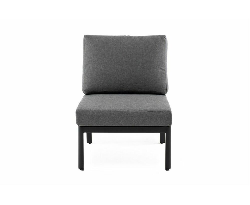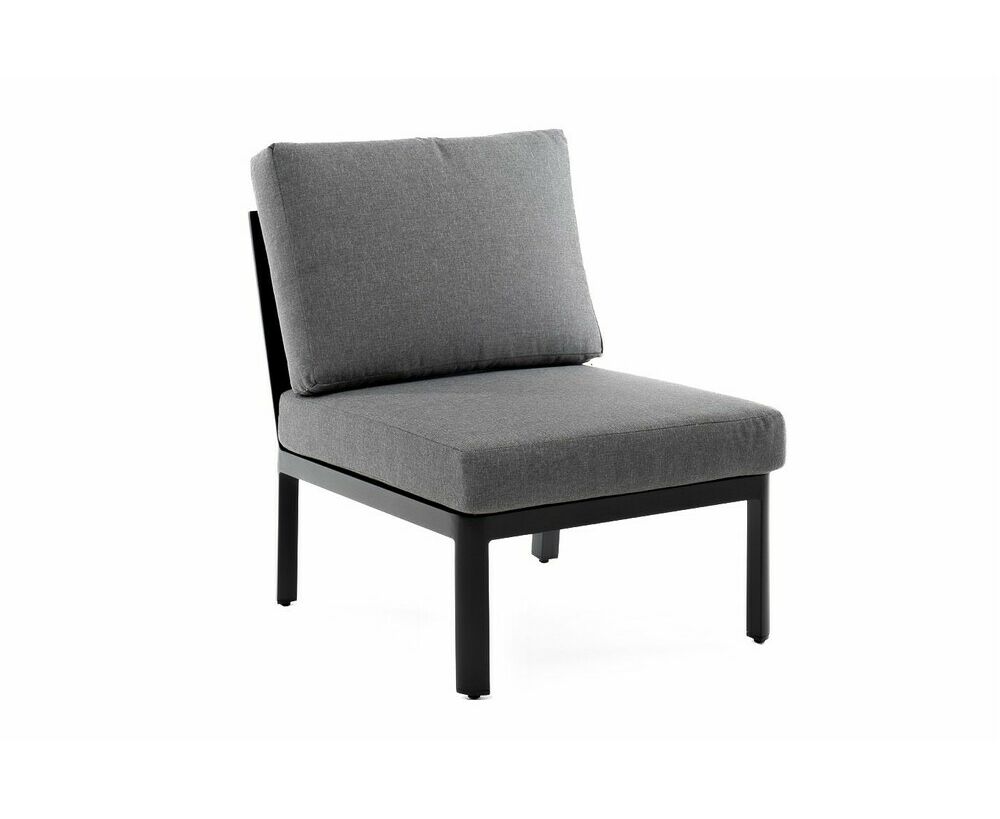 «Париж» модуль диванный центральный, алюминиевый каркас темно-серого цвета. В комплекте с подушками серого цвета со съёмными чехлами. Размер: 600×780×700 мм.