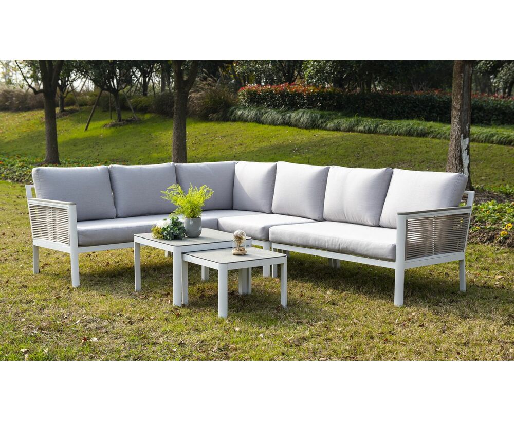 В основе находится устойчивый алюминиевый каркас, характеризующийся высокой износостойкостью. Столик гармонично дополняет зону отдыха, обустроенную уличной мебелью из этой серии. Представлен в белом цвете.