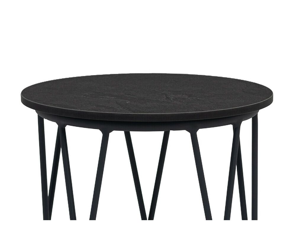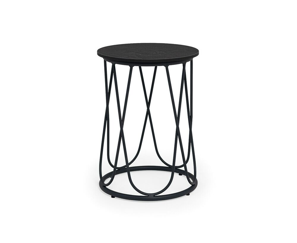 "Перу" журнальный стол из HPL круглый Ø40 H55, каркас из алюминия темно-серый (RAL 7024) муар, цвет столешницы "дуб"
