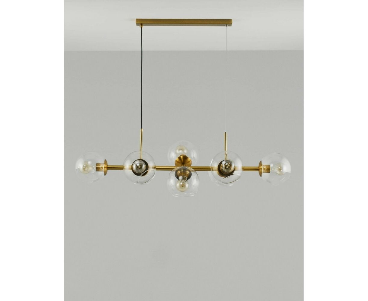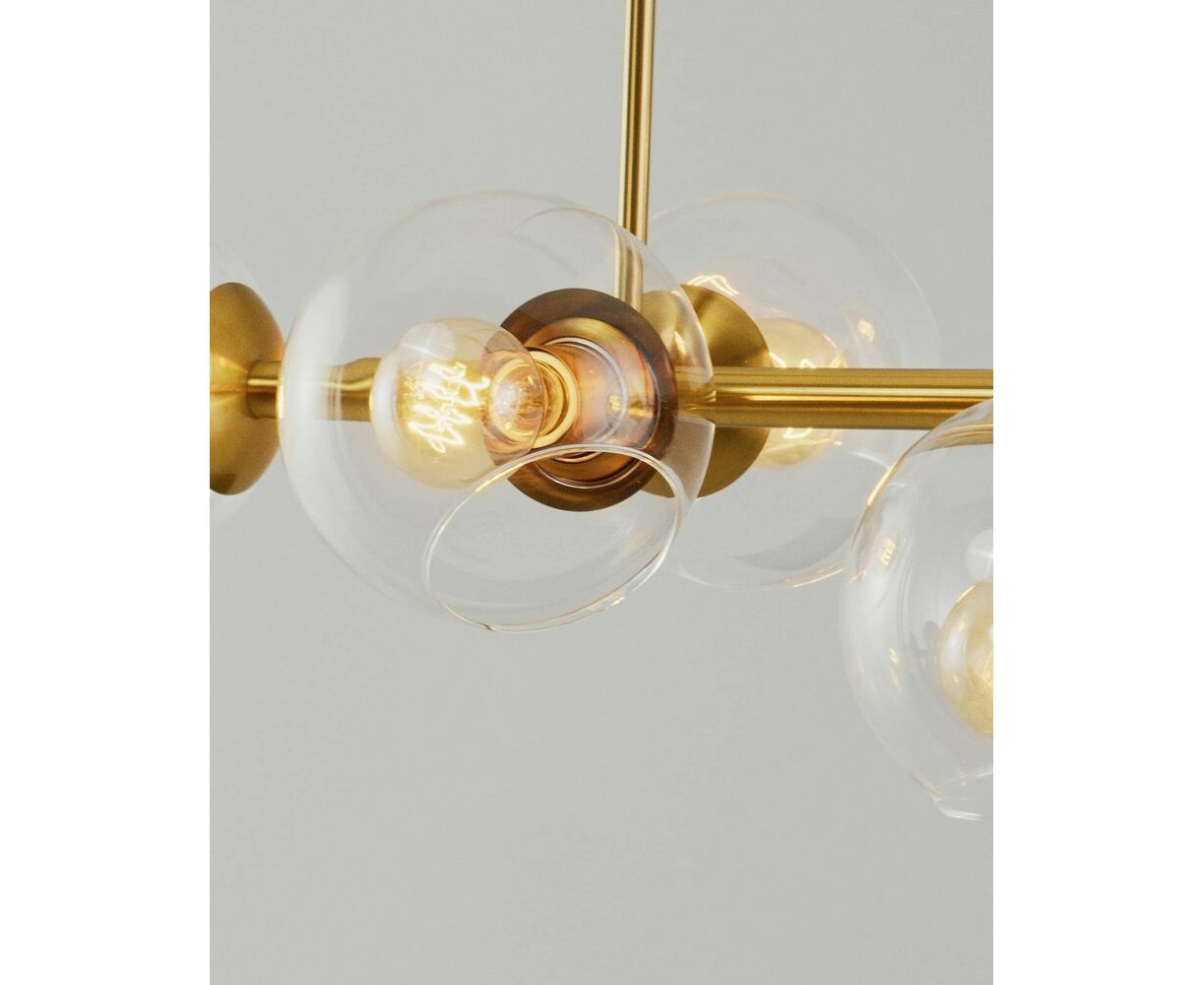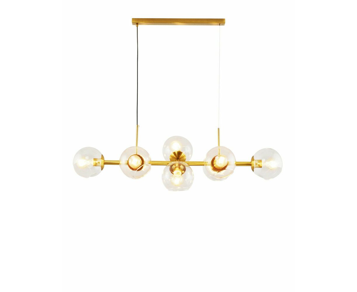 Современная подвесная люстра Long в стиле лофт. Плафоны из прозрачного стекла способствуют созданию яркого освещения и дополняют светильник воздушным дизайном. Металлический каркас надежно крепится к потолку с помощью планки и удерживается благодаря нескольким тросам. Люстру можно регулировать по высоте. В качестве источника света подойдут лампы накаливания или LED с цоколем Е27. Подвесная люстра Long станет прекрасным дополнением в любом современном интерьере. Подойдёт для освещения кухни, зала, гостиной и обеденной зоны.