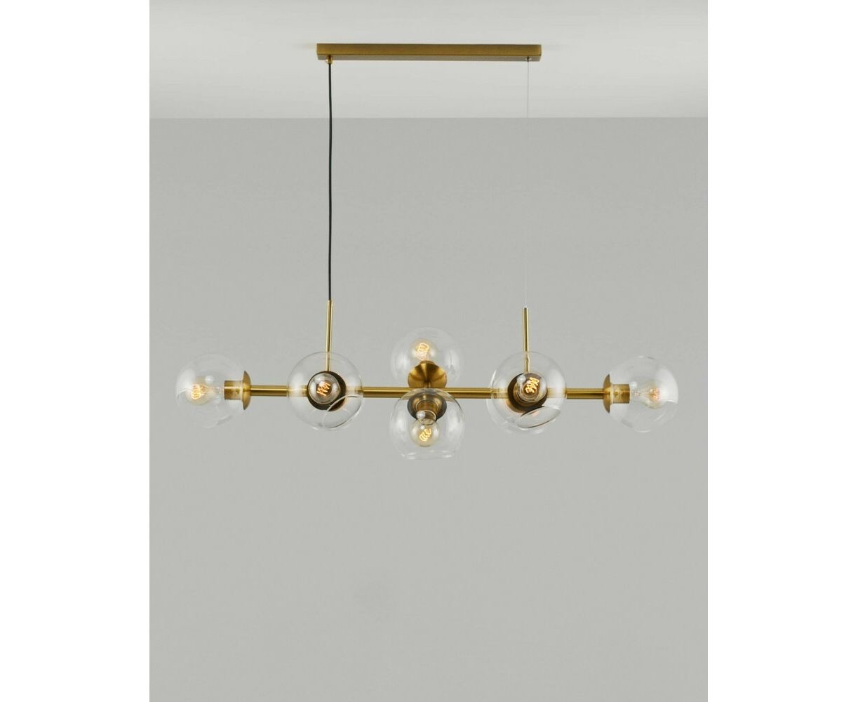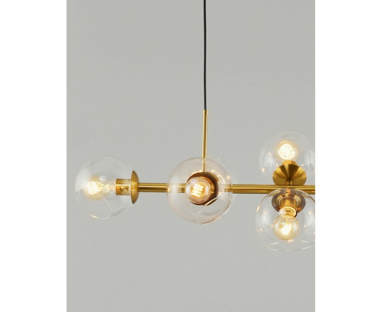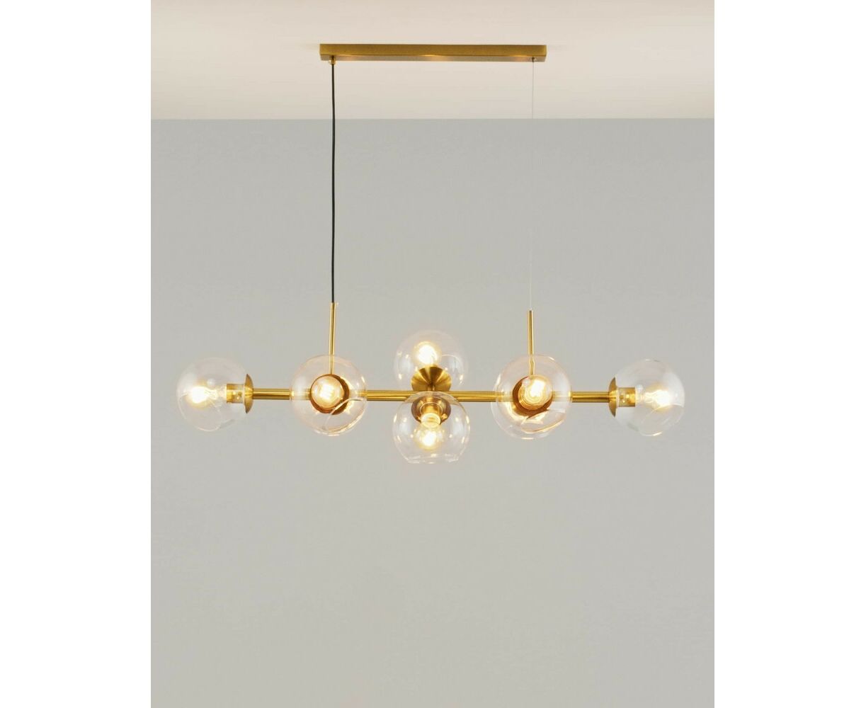 Современная подвесная люстра Long в стиле лофт. Плафоны из прозрачного стекла способствуют созданию яркого освещения и дополняют светильник воздушным дизайном. Металлический каркас надежно крепится к потолку с помощью планки и удерживается благодаря нескольким тросам. Люстру можно регулировать по высоте. В качестве источника света подойдут лампы накаливания или LED с цоколем Е27. Подвесная люстра Long станет прекрасным дополнением в любом современном интерьере. Подойдёт для освещения кухни, зала, гостиной и обеденной зоны.