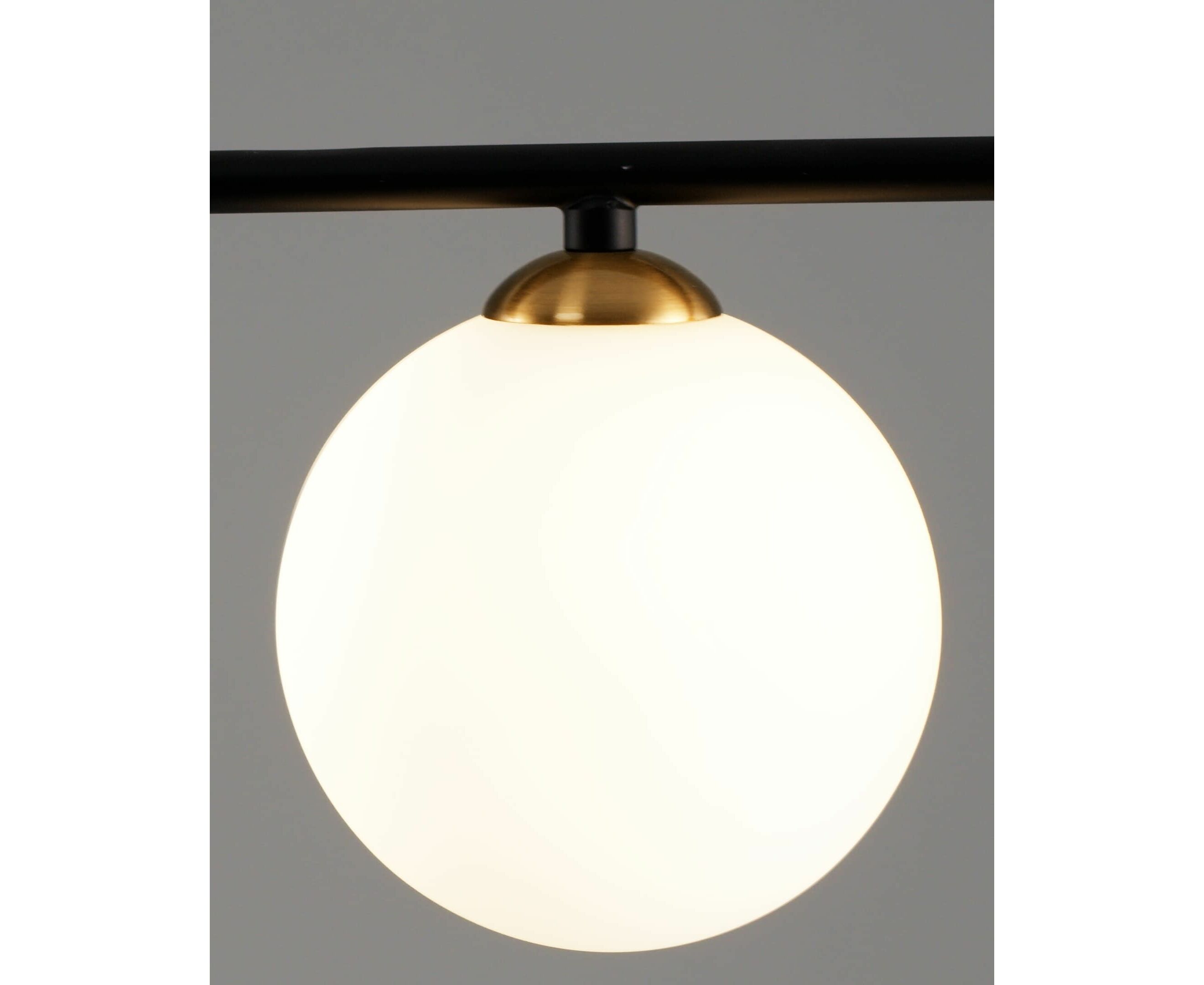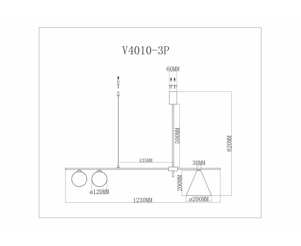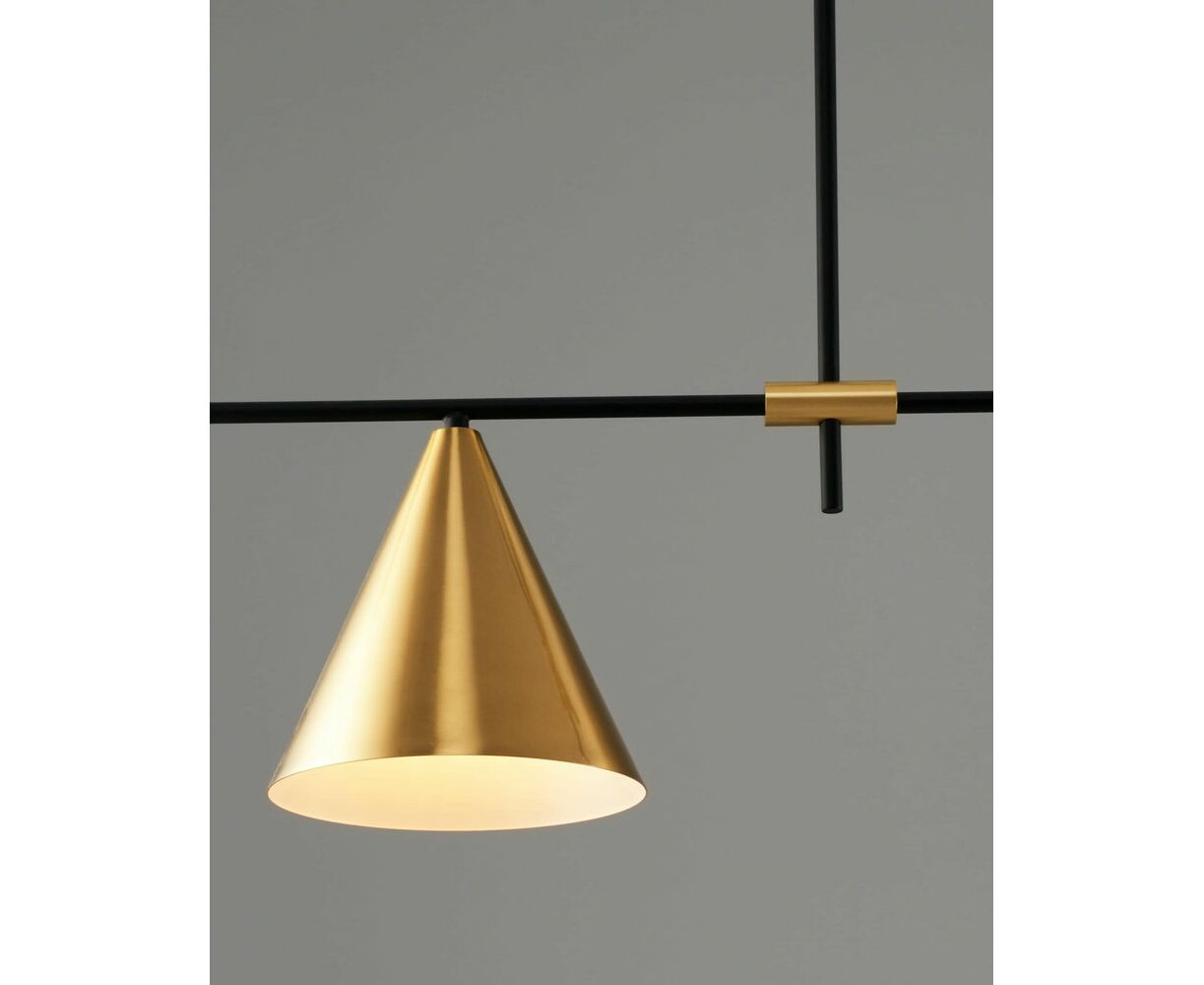 Стильный и оригинальный подвесной светильник Dellay. Светильник сочетает в себе геометрическую композицию из объемных фигур. Один плафон конусной формы создаёт приглушённое и точечное освещение, а два шарообразных плафона из матового стекла мягко рассеивают свет. Металлический каркас надёжно крепится к потолку с помощью планки и дополнительного троса. Длина каркаса в 123 см позволяет разместить светильник в больших и просторных комнатах, площадь освещения составляет 16 м². Данная модель идеальный вариант для коридора, кухни или барной зоны.