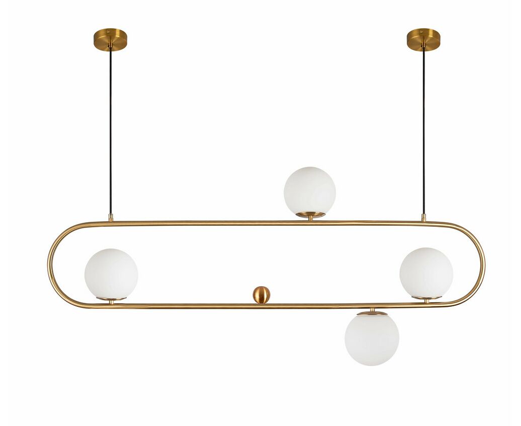 Оригинальный и стильный подвесной светильник Miya станет идеальным световым акцентом в любом современном интерьере. Сферичные плафоны из матового стека мягко рассеивают свет. Металлический каркас с закруглёнными углами дополняет форму всей композиции. Конструкция надёжно крепится к потолку с помощью 2-х крепежных планок, высота всей конструкции составляет 120 см, при монтаже высоту можно отрегулировать. В качестве источника света используются лампы с цоколем G9.