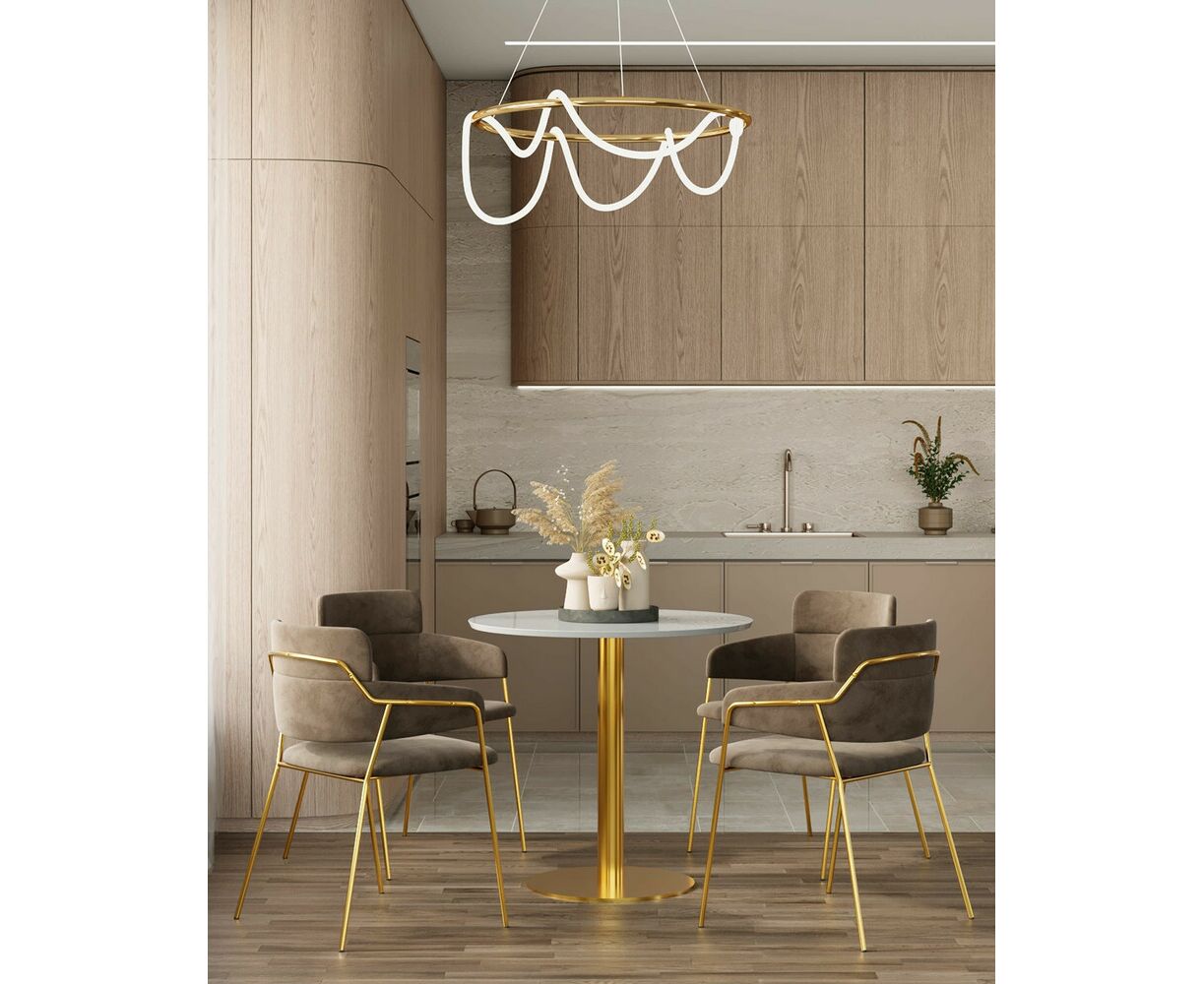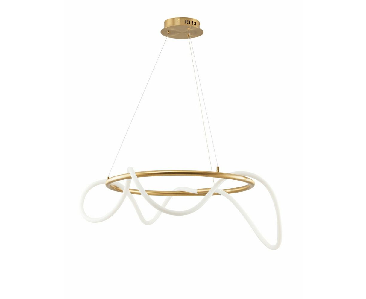 Современный светодиодный светильник из серии True. Лаконичный светильник состоит из светодиодной ленты мощностью 36 Вт и металлического каркаса в виде круга. Лента имеет силиконовую оболочку для более мягкого и равномерного рассеивания света. Источник освещения плавно свисает с разных сторон корпуса, создавая воздушный и уникальный образ. Общая длина светильника составляет 70 см, что позволяет охватить 20 м² площади для освещения комнаты. При необходимости высоту светильника можно отрегулировать с помощью подвесных тросов. Данная модель с лёгкостью дополнит любой интерьер в современном стиле.