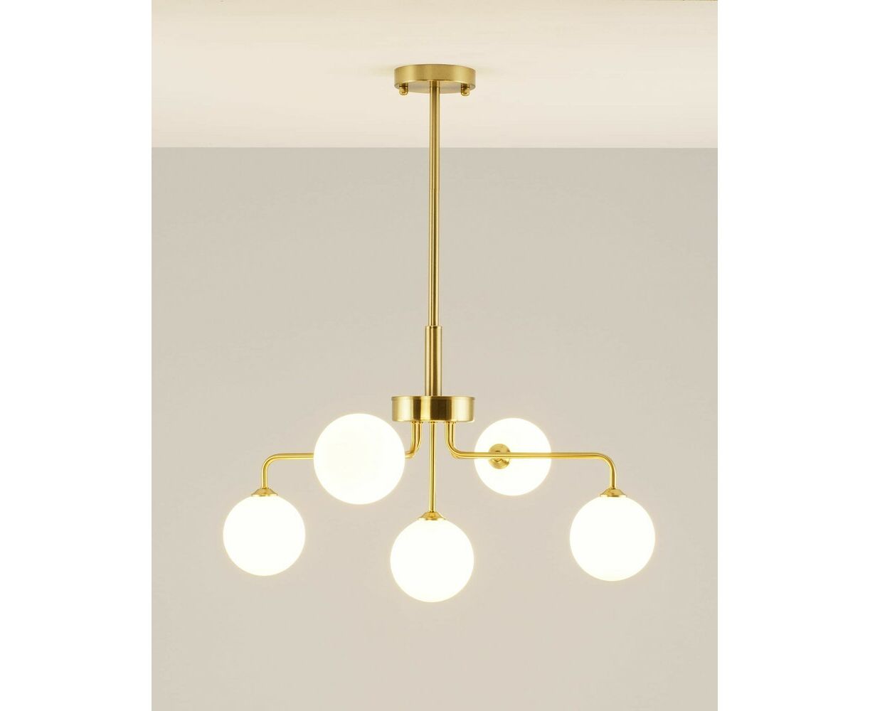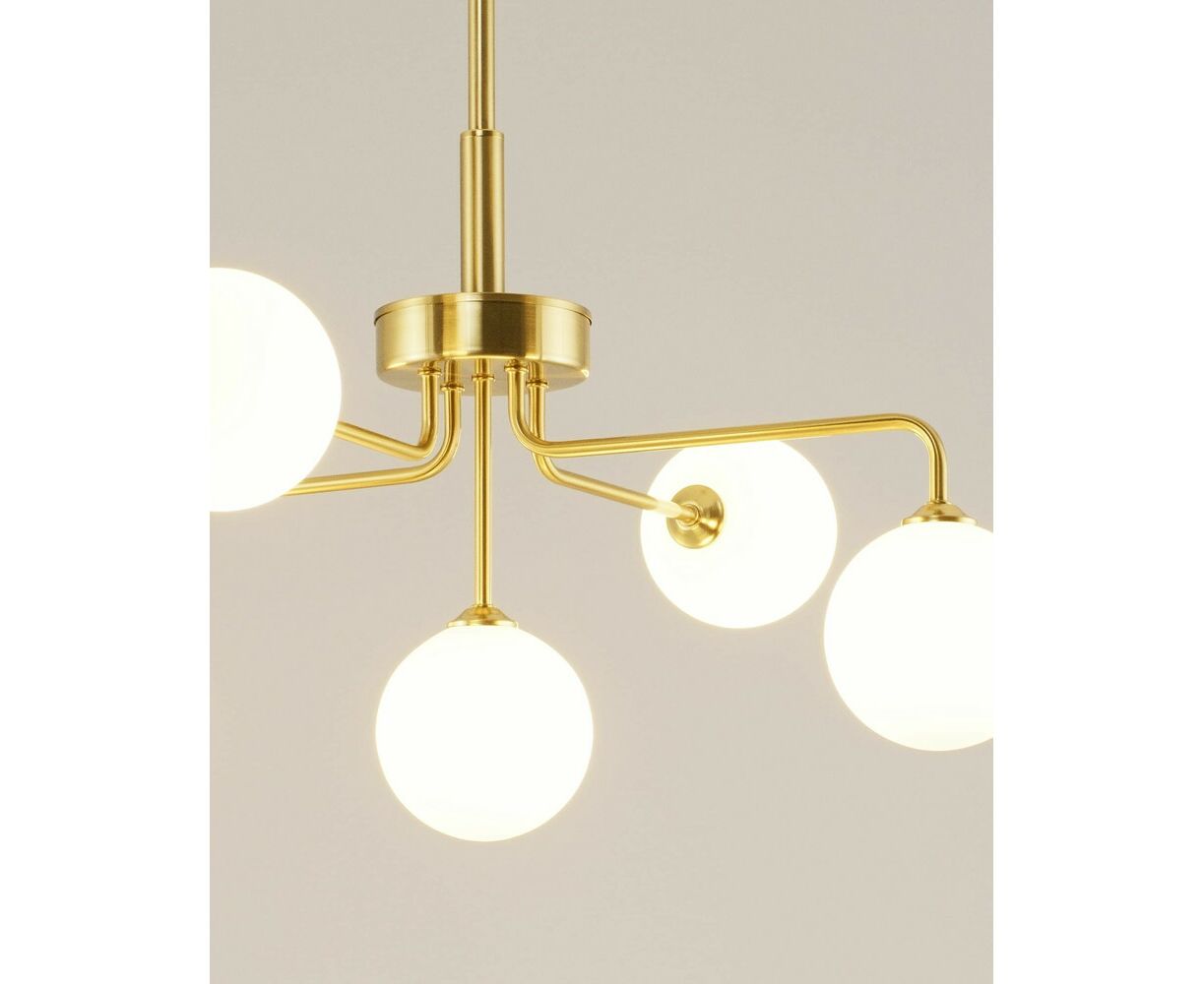 Современная подвесная люстра Heavy на штанге. Воздушные плафоны из матового стекла гармонично сочетаются с металлическим каркасом цвета золота и мягко рассеивают свет. Люстра надежно крепится к потолку с помощью планки. Встроенные LED лампы с цоколем G9 обеспечивают яркое и качественное освещение. Утонченный и стильный дизайн люстры дополнит интерьер в стиле лофт. Светильник Heavy с площадью освещения 14 м² подойдет для спальни, зала, кухни или холла.