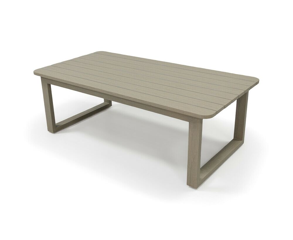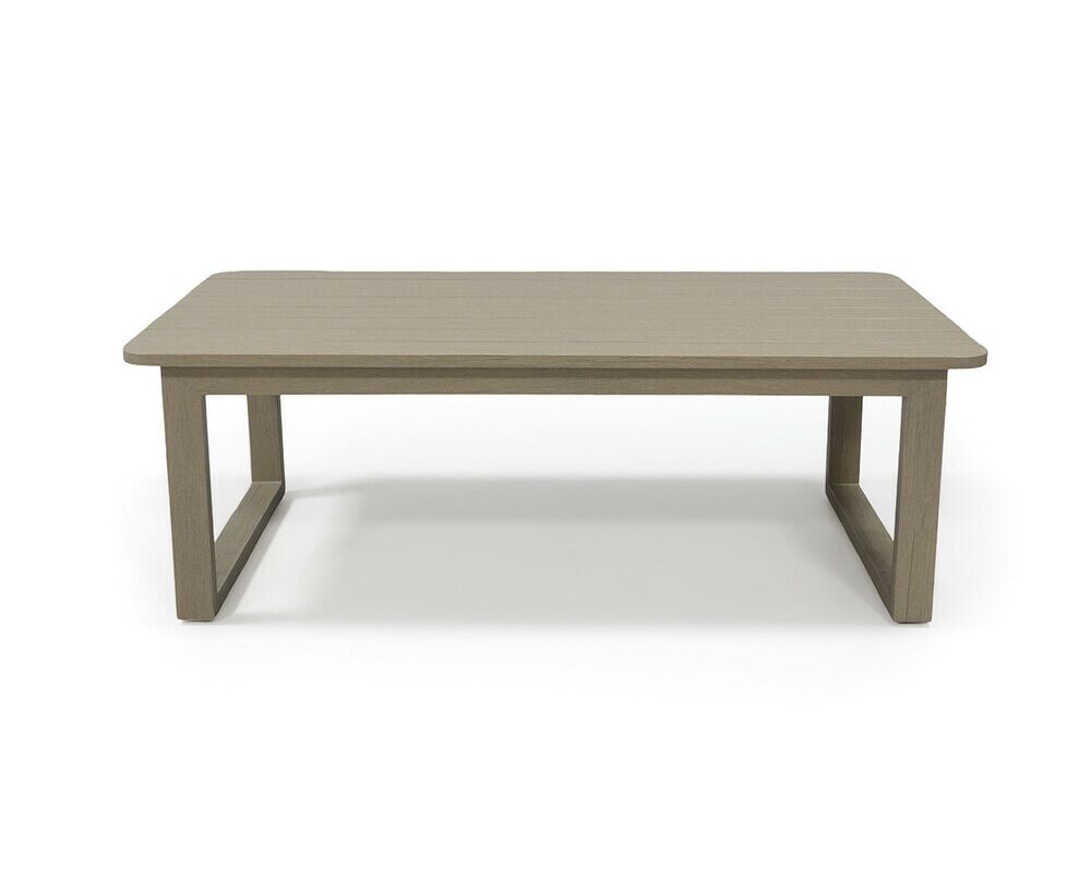 Элегантный журнальный столик «Прато», выполнен из прочного алюминия в стильном цвете под холодное бежевое дерево.