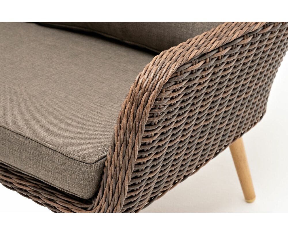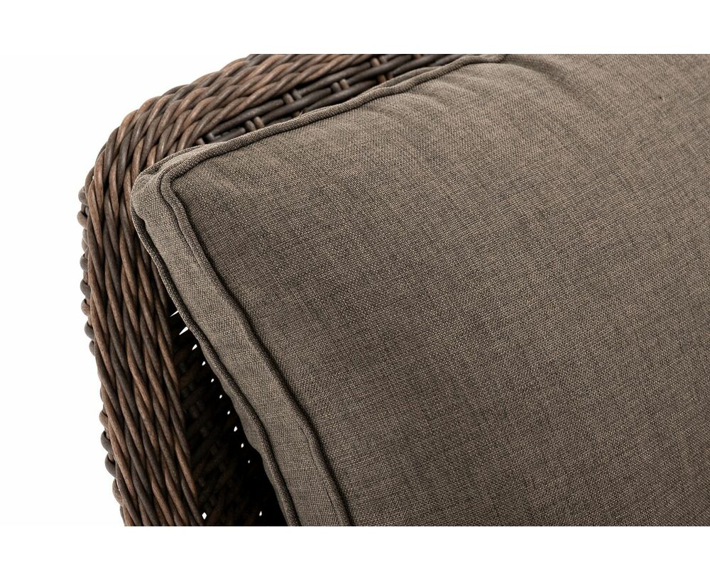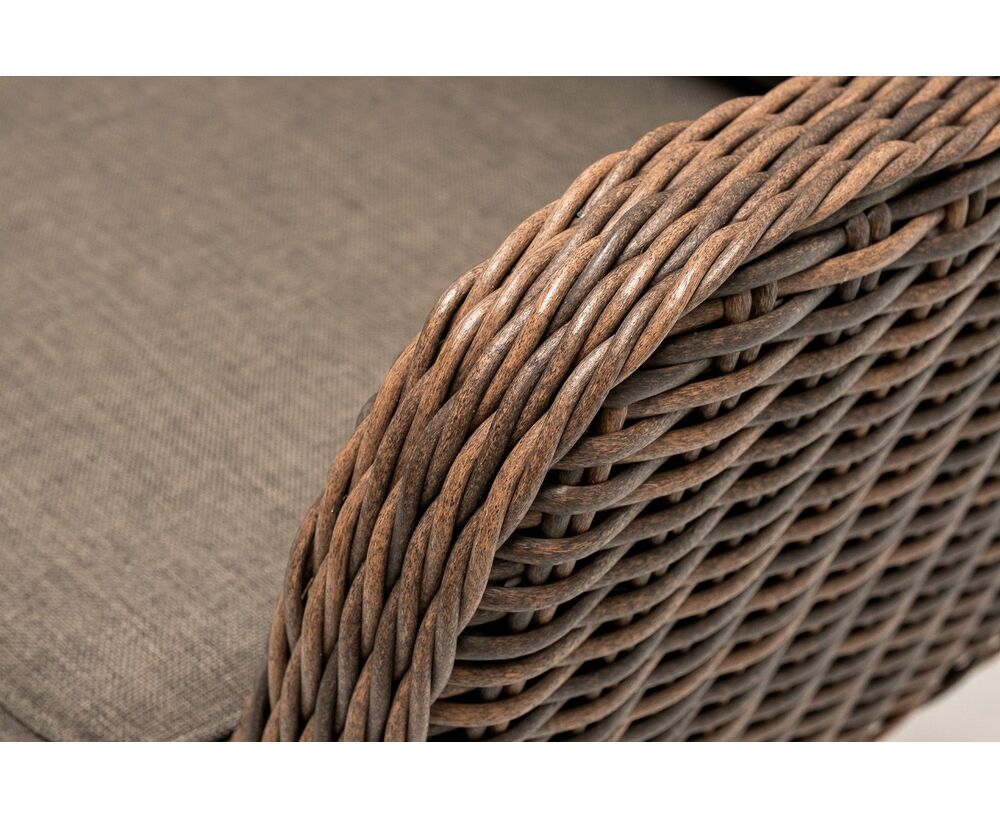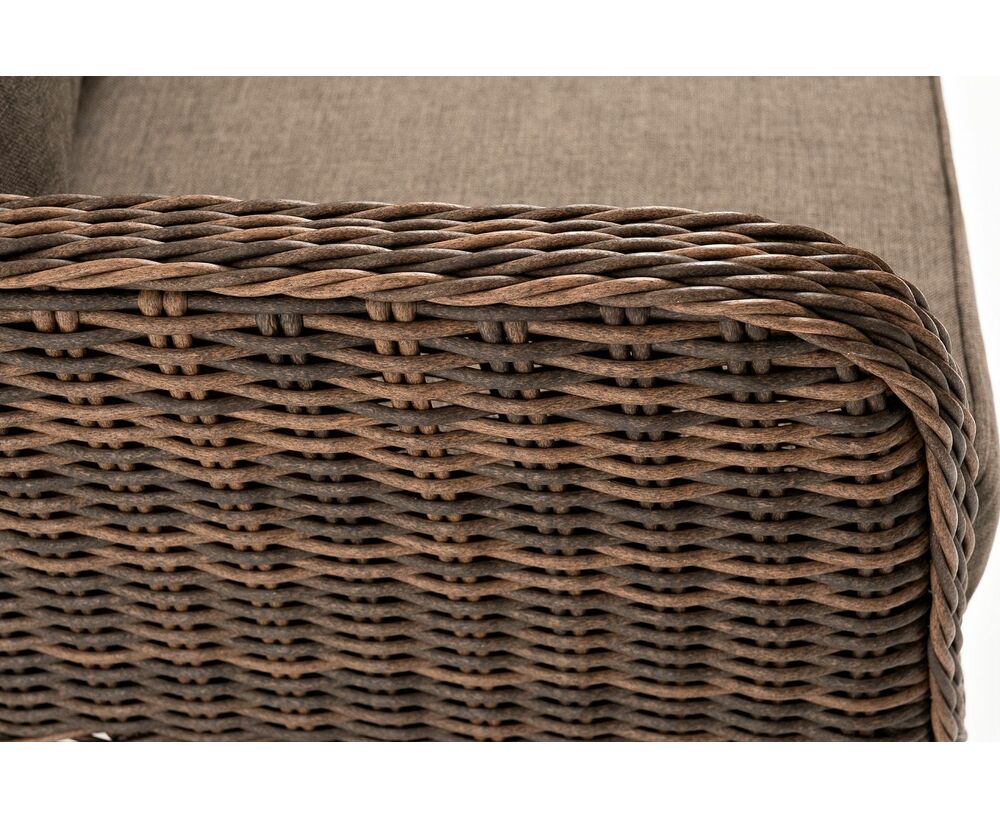 Для оплетки каркаса используется высококачественный искусственный ротанг. Мебель выполнена в коричневом цвете.