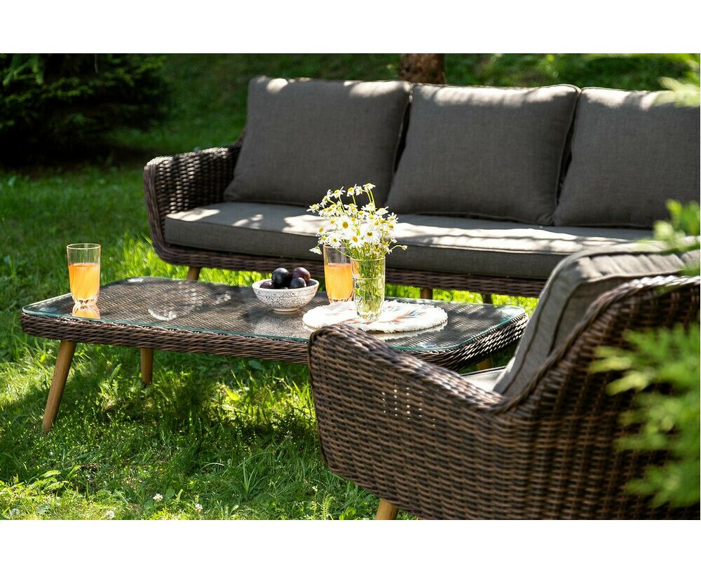 "Прованс" диван из искусственного ротанга трехместный, цвет коричневый 1шт. 1 900Х800Х770, "Прованс" кресло из искусственного ротанга, цвет коричневый 2шт. 810Х800Х770, "Прованс" столик журнальный из ротанга, цвет коричневый 1шт. 1 200Х580Х330,