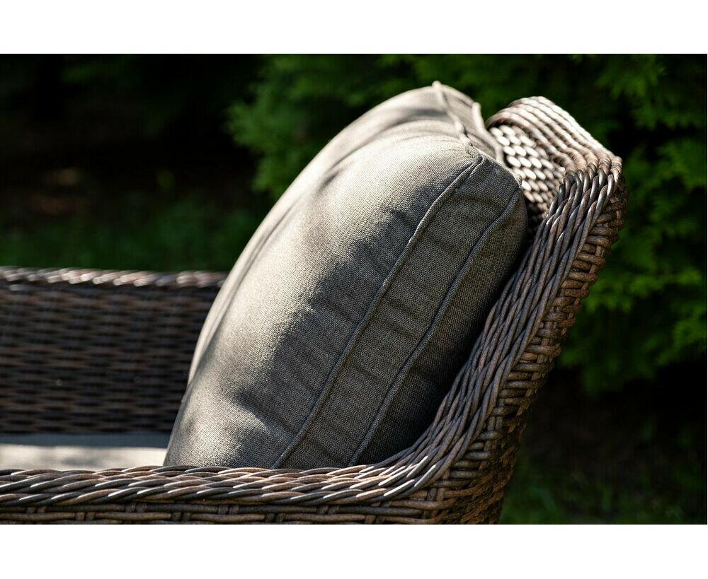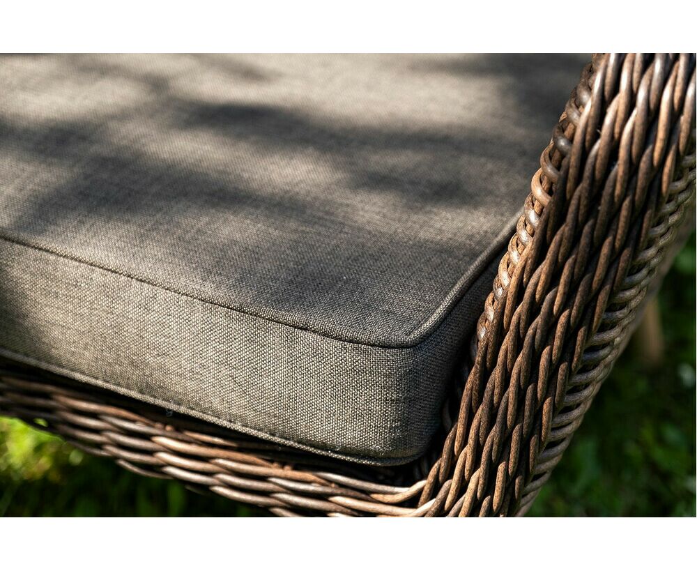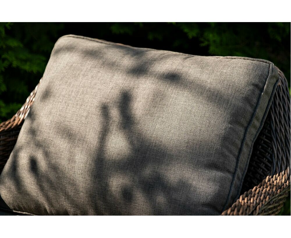 Диван и кресла оснащены подушками со съёмными чехлами серо-коричневого цвета. При изготовлении чехлов используется высокопрочный полиэстер, плотность - 230гр/м2 и влагоотталкивающая пропитка.