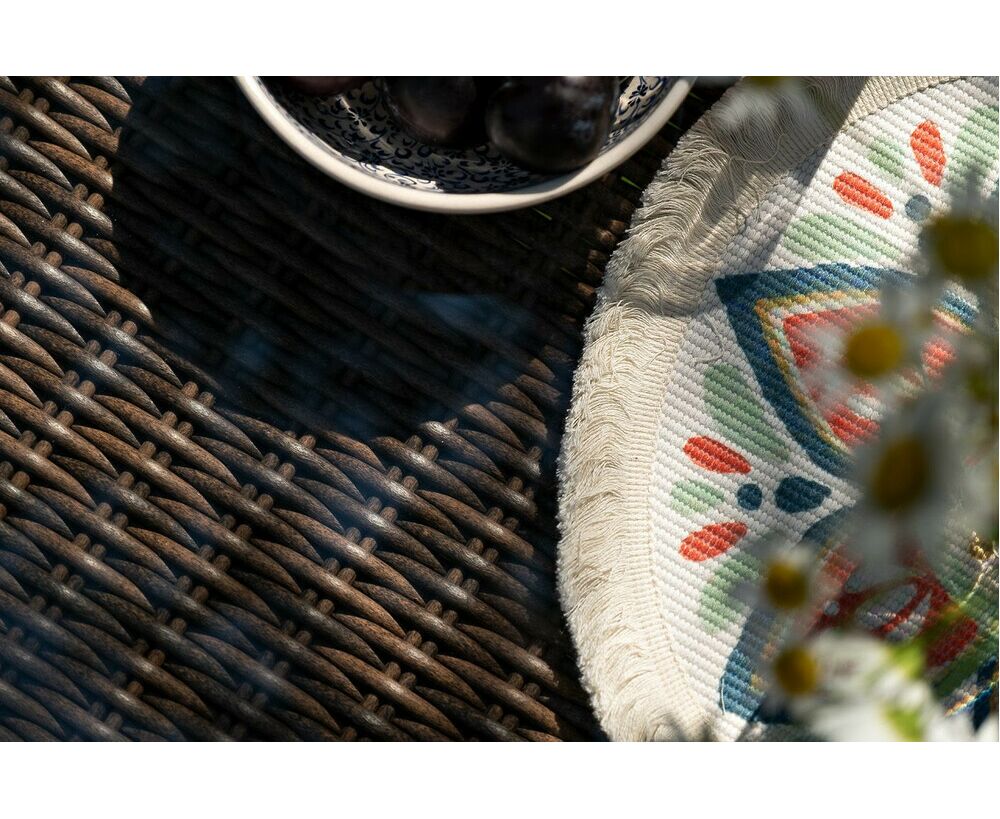 Каркас всей группы выполнен из прочного алюминия, который оплетен круглым искусственным ротангом. Цвет – коричневый.