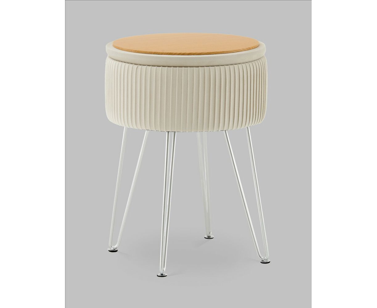 Пуф Астор бежевый серебряные ножки