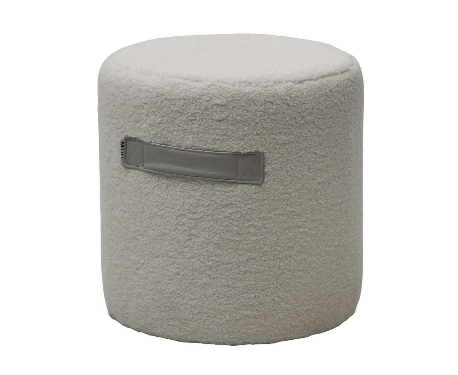 Пуф обит мягкой тканью, напоминающую шерсть молодого ягненка. Ручки из экокожи.