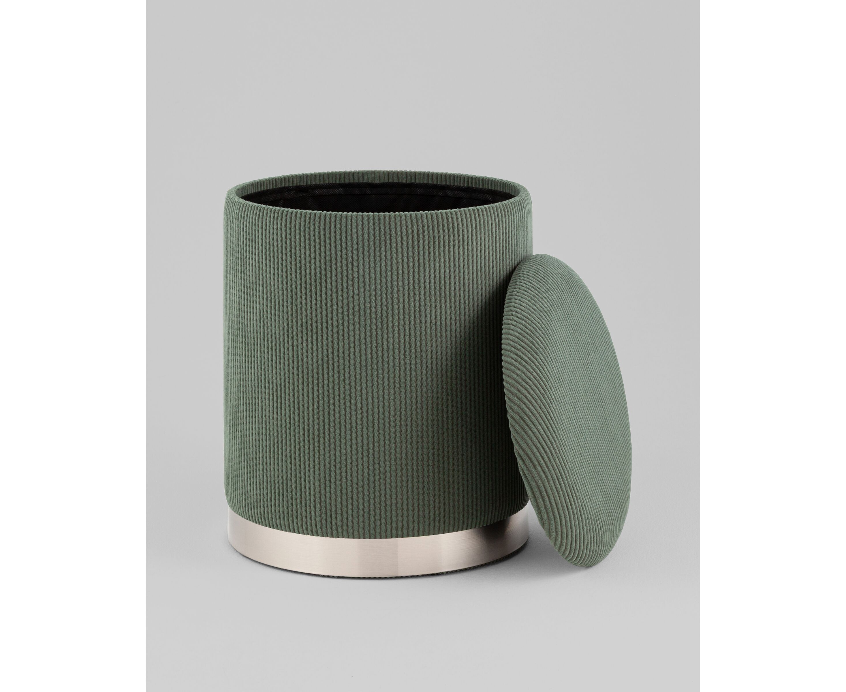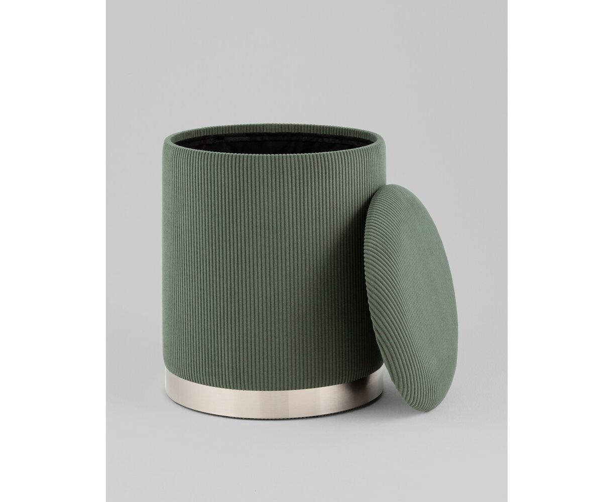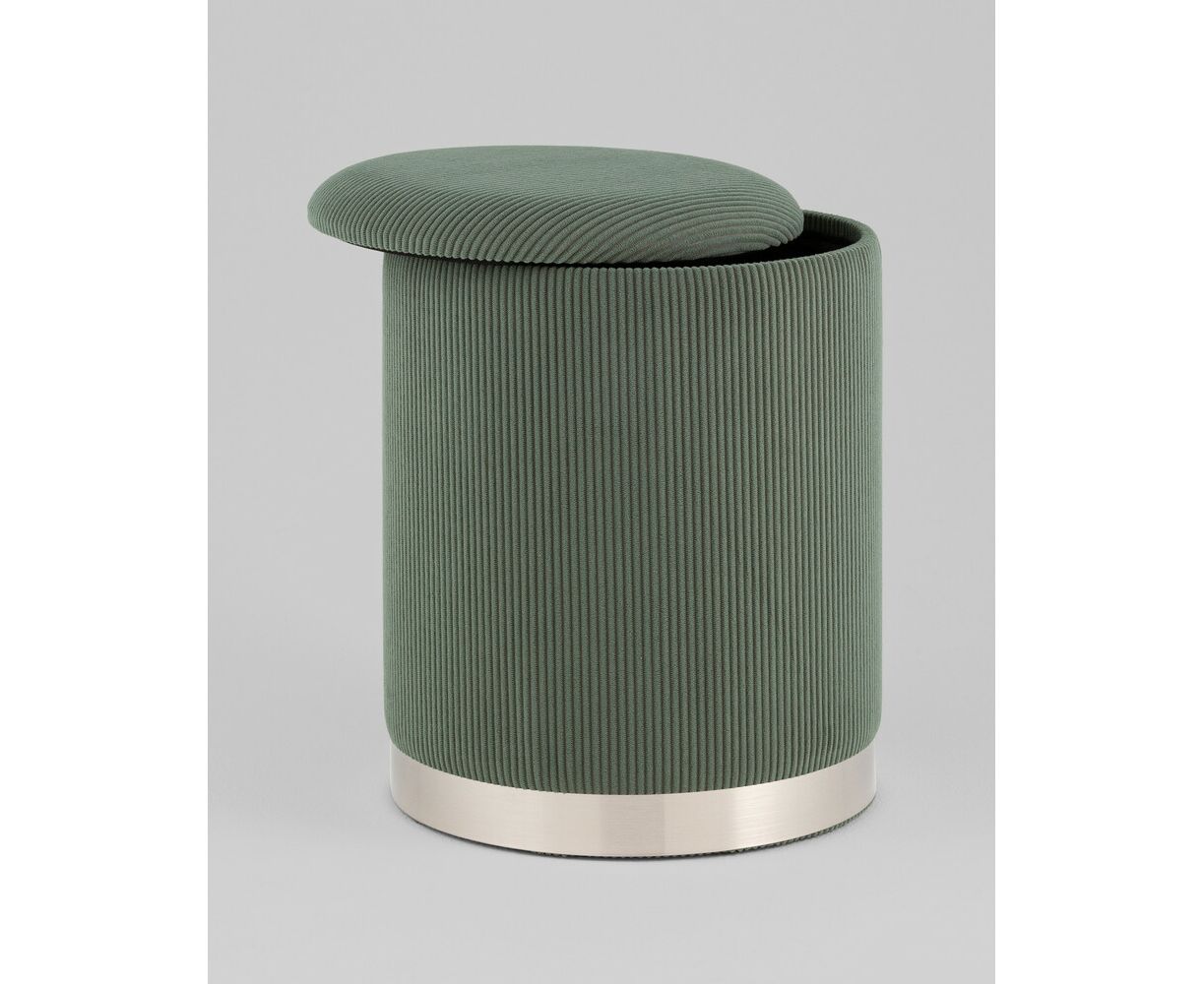 Пуф Эмили с ящиком серебро вельвет зелёный