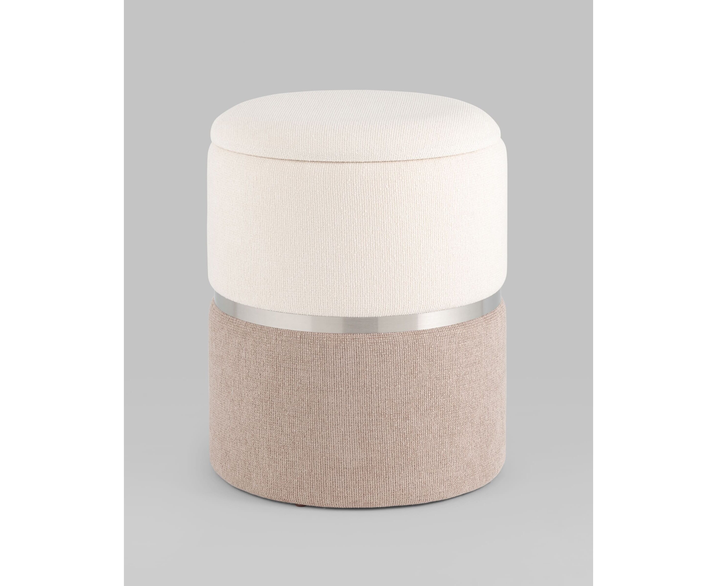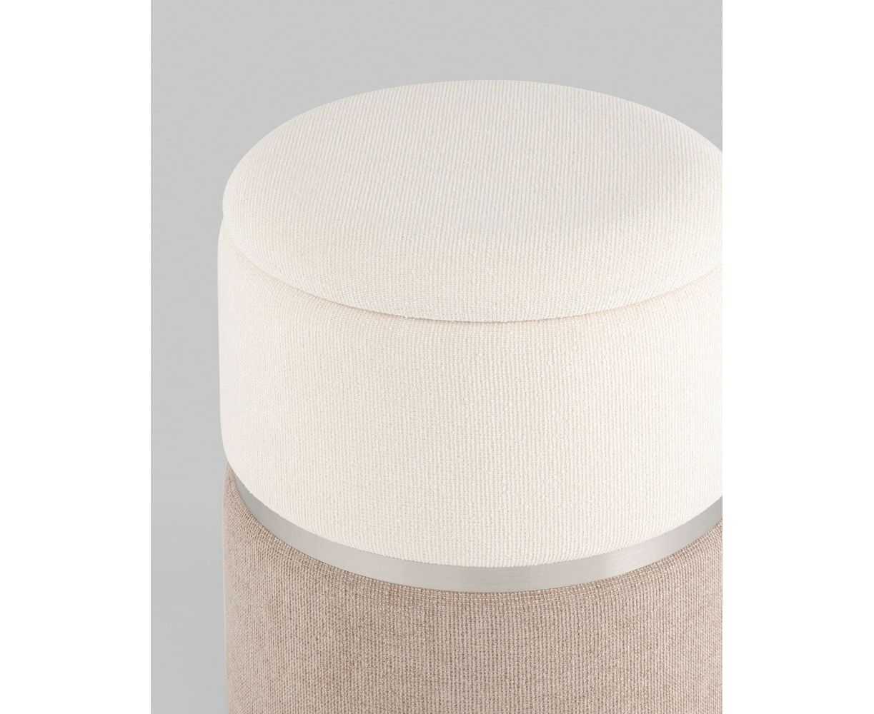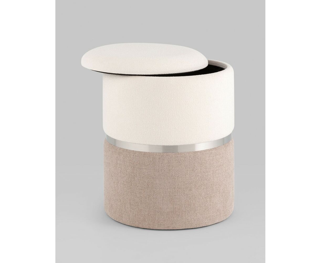 Пуф Кэрри с ящиком шенилл серо-бежевый с декоративным серебристым ободком
