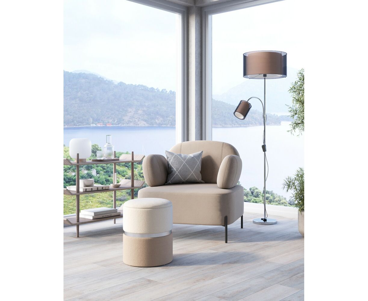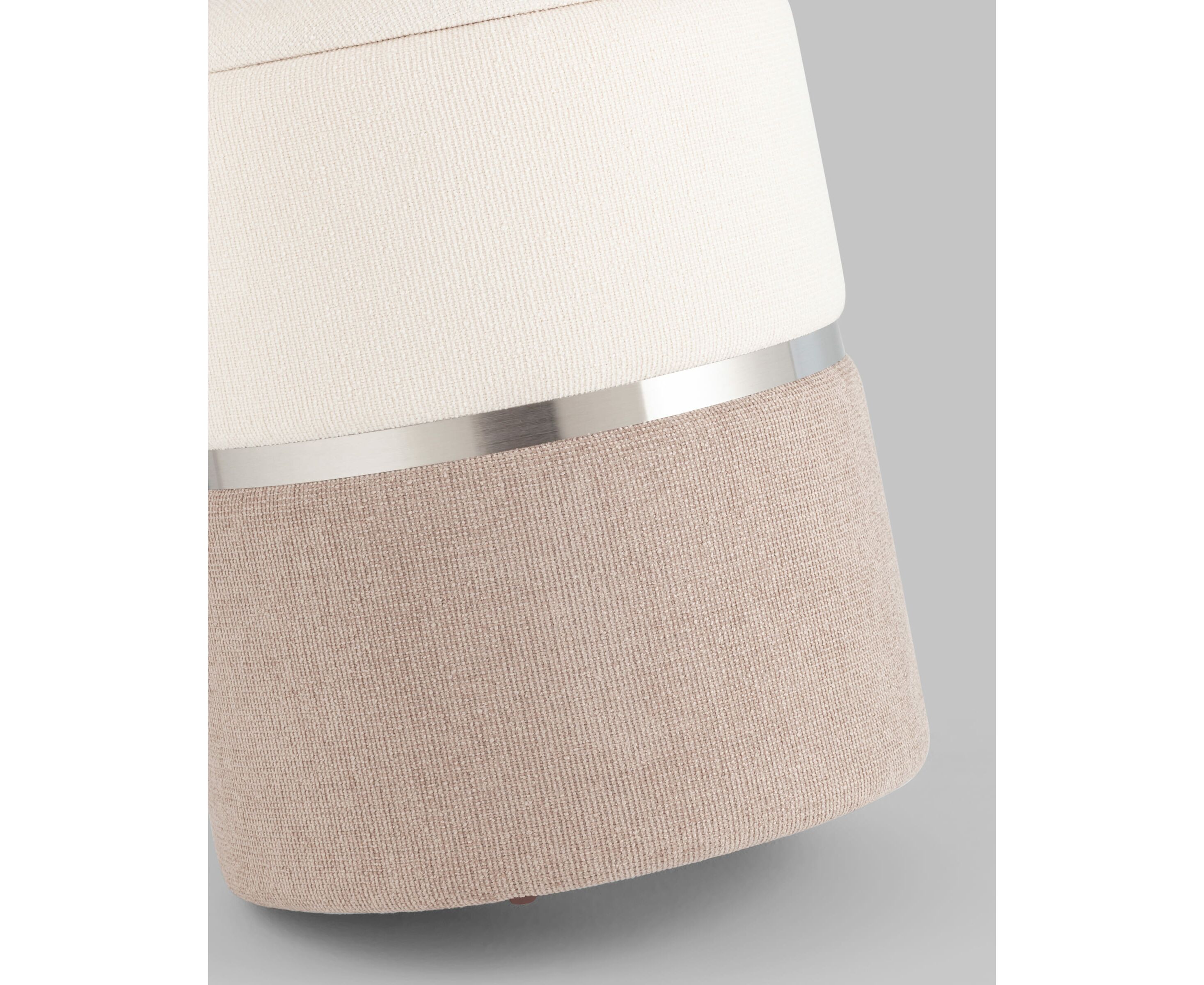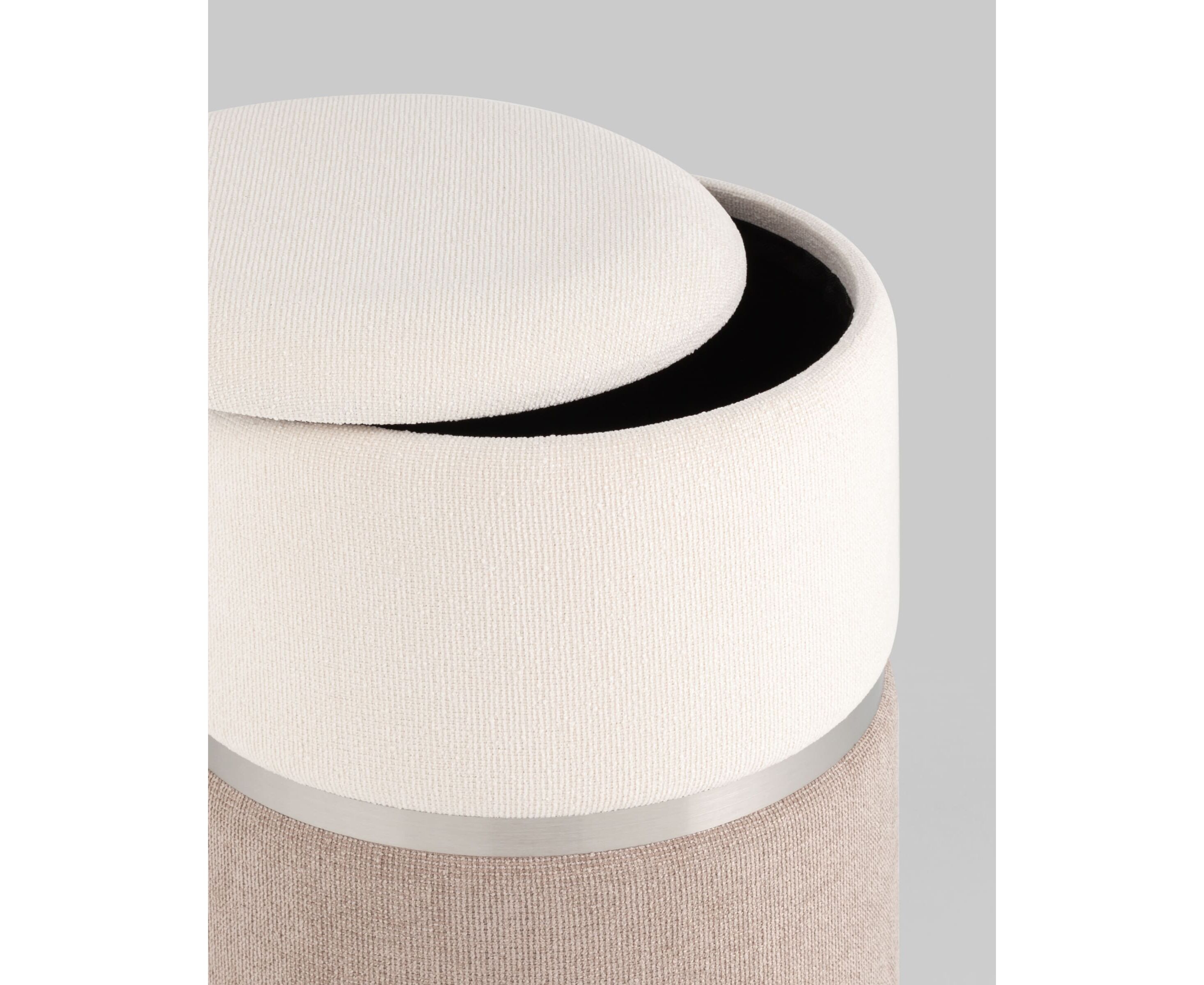 Пуф Кэрри с ящиком шенилл серо-бежевый с декоративным серебристым ободком