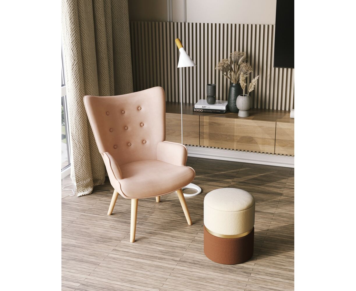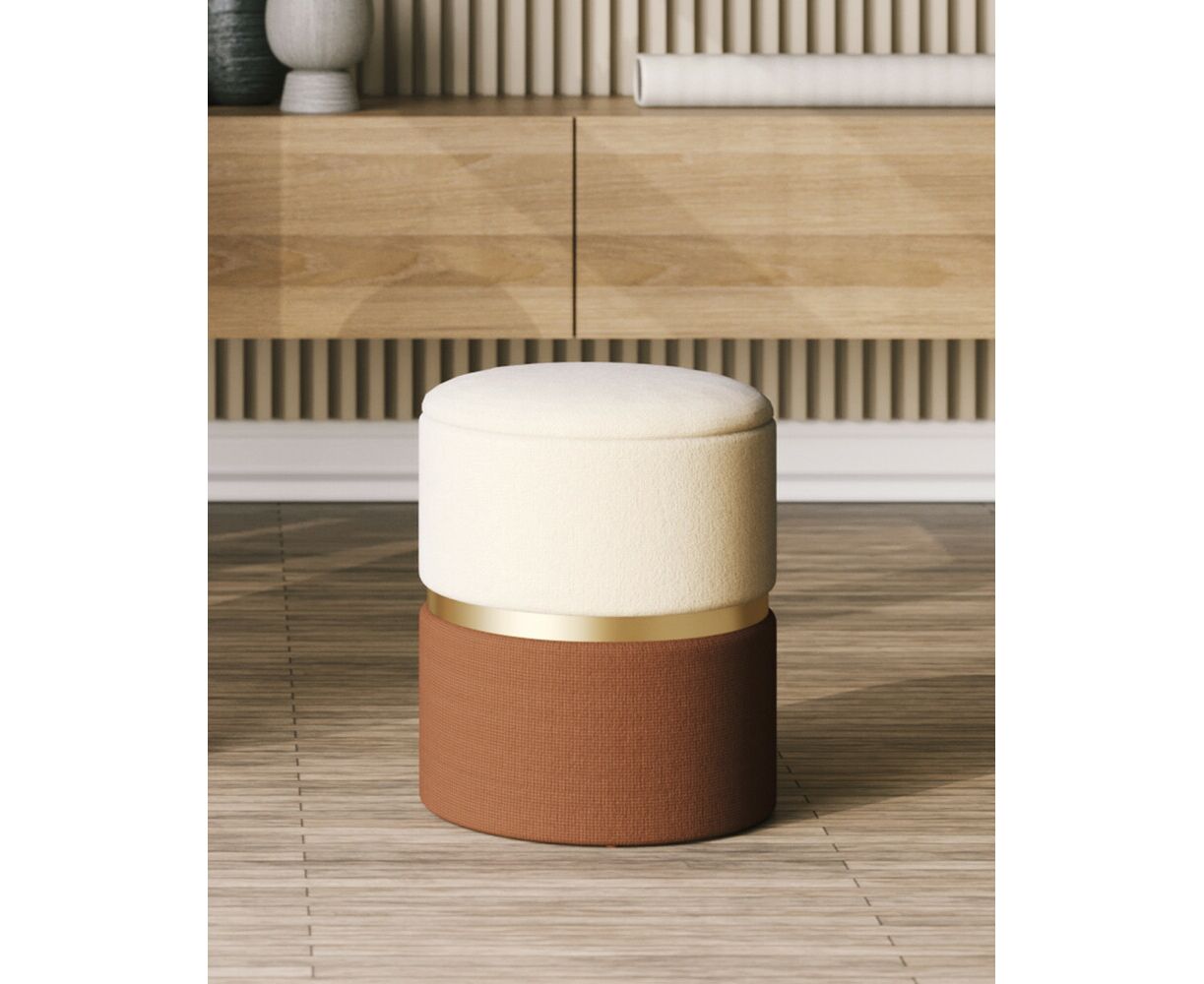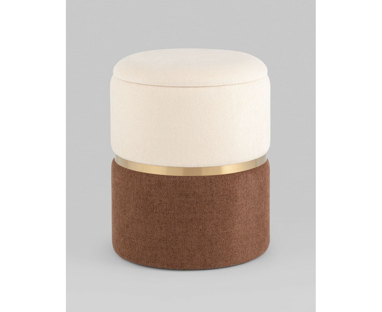 Пуф Кэрри с ящиком шенилл коричневый с декоративным золотым ободком