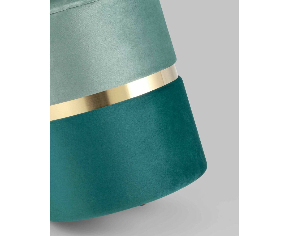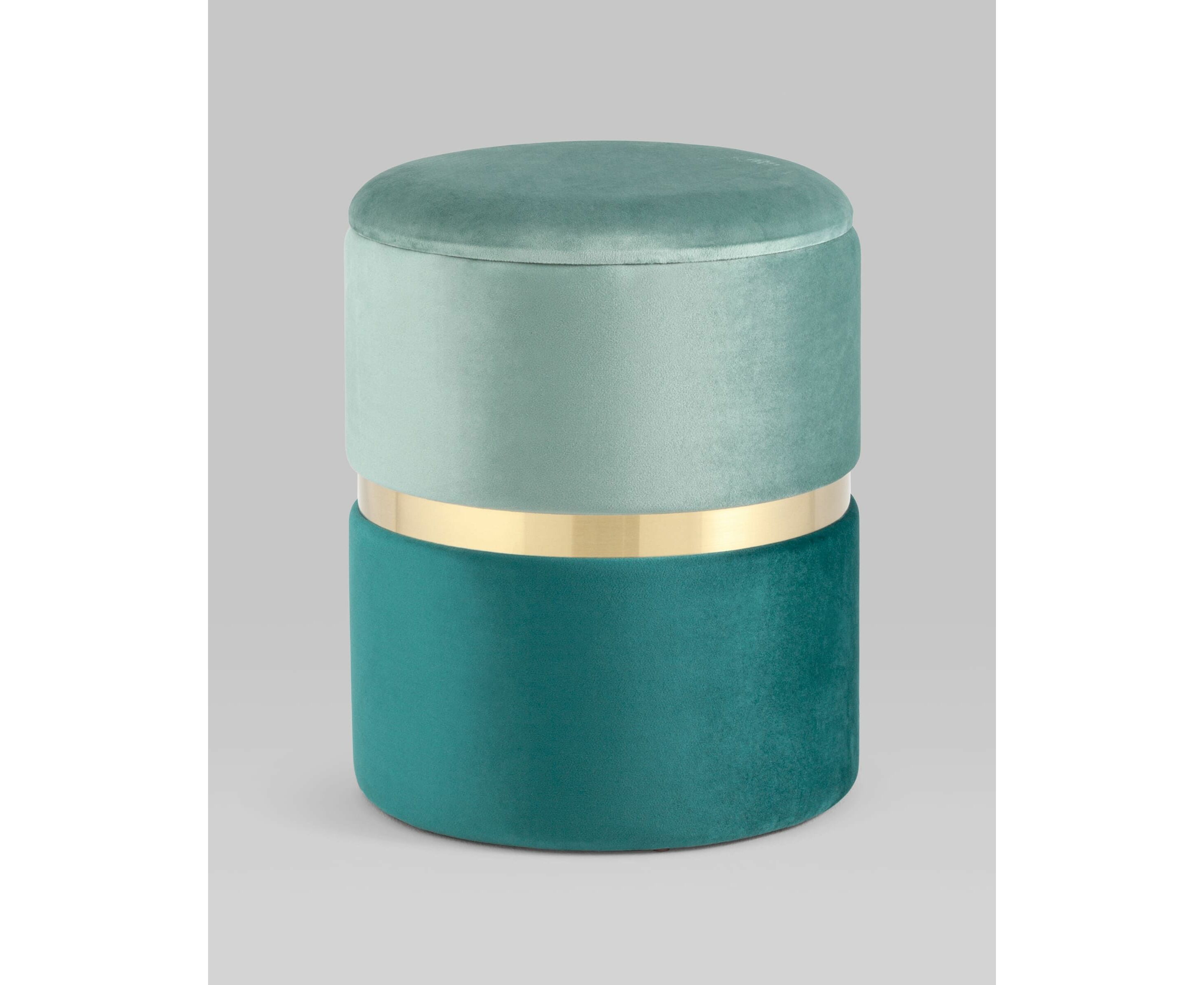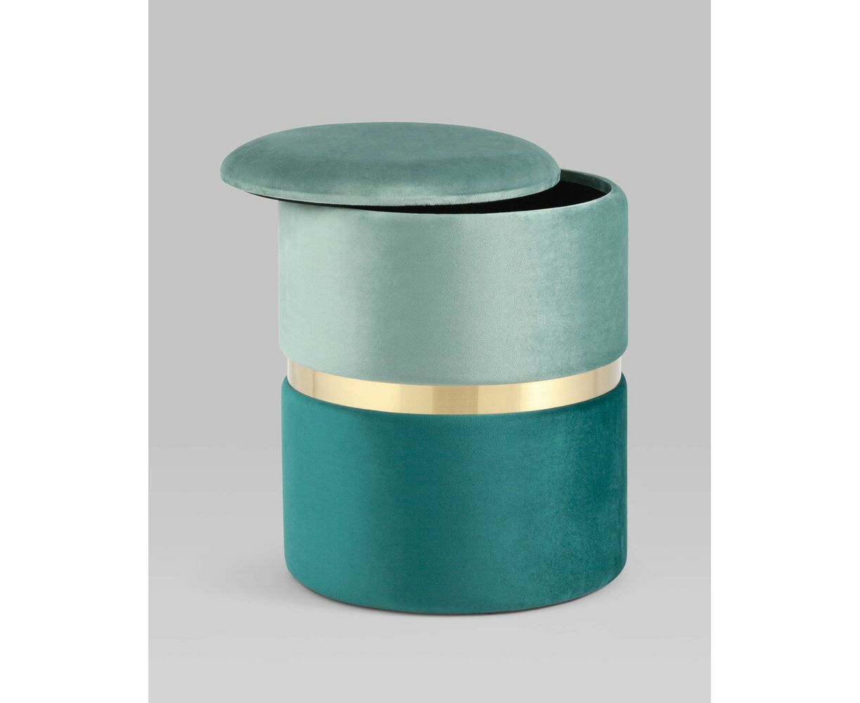 Лаконичная модель пуфа в мягкой обивке прекрасно впишется в современные интерьеры. Обивка выполнена из велюра в светлом и темном оттенках и украшена металлическим ободком в золотом цвете. Под сиденьем имеется ящик для хранения различных мелочей. В основании предусмотрены специальные подпятники, которые делают пуф более устойчивым и предотвращают скольжение.