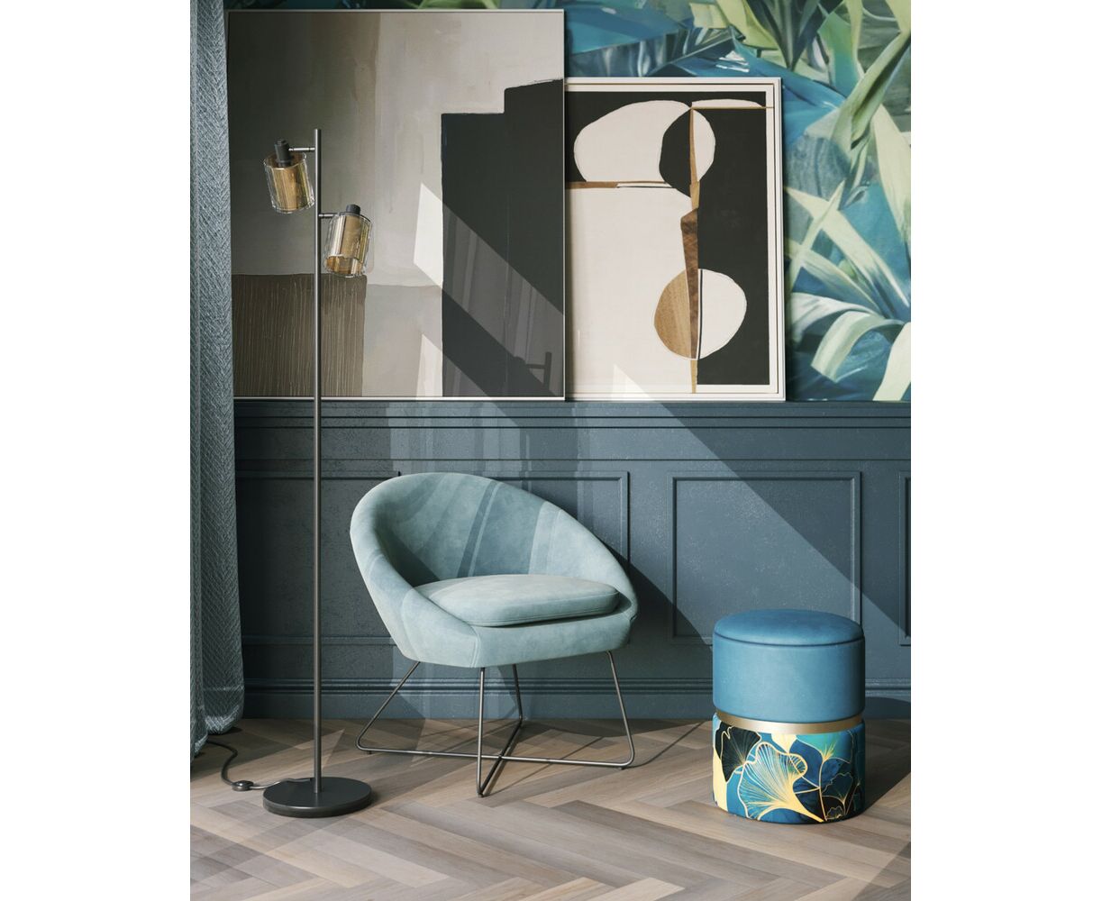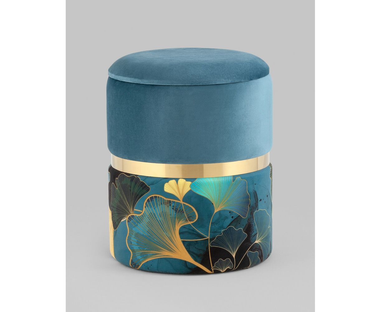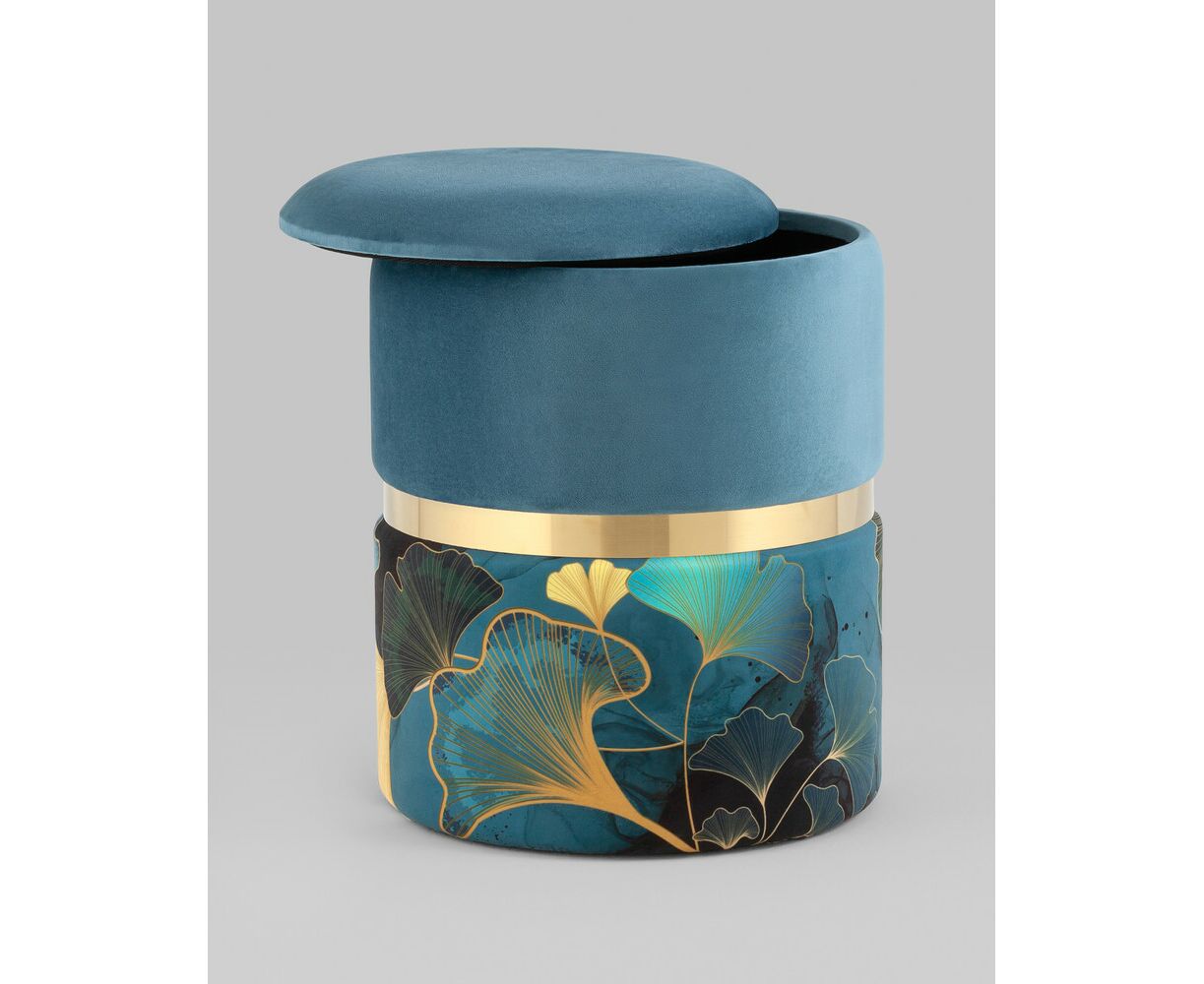 Пуф Кэрри с ящиком велюр Gingko с декоративным золотым ободком