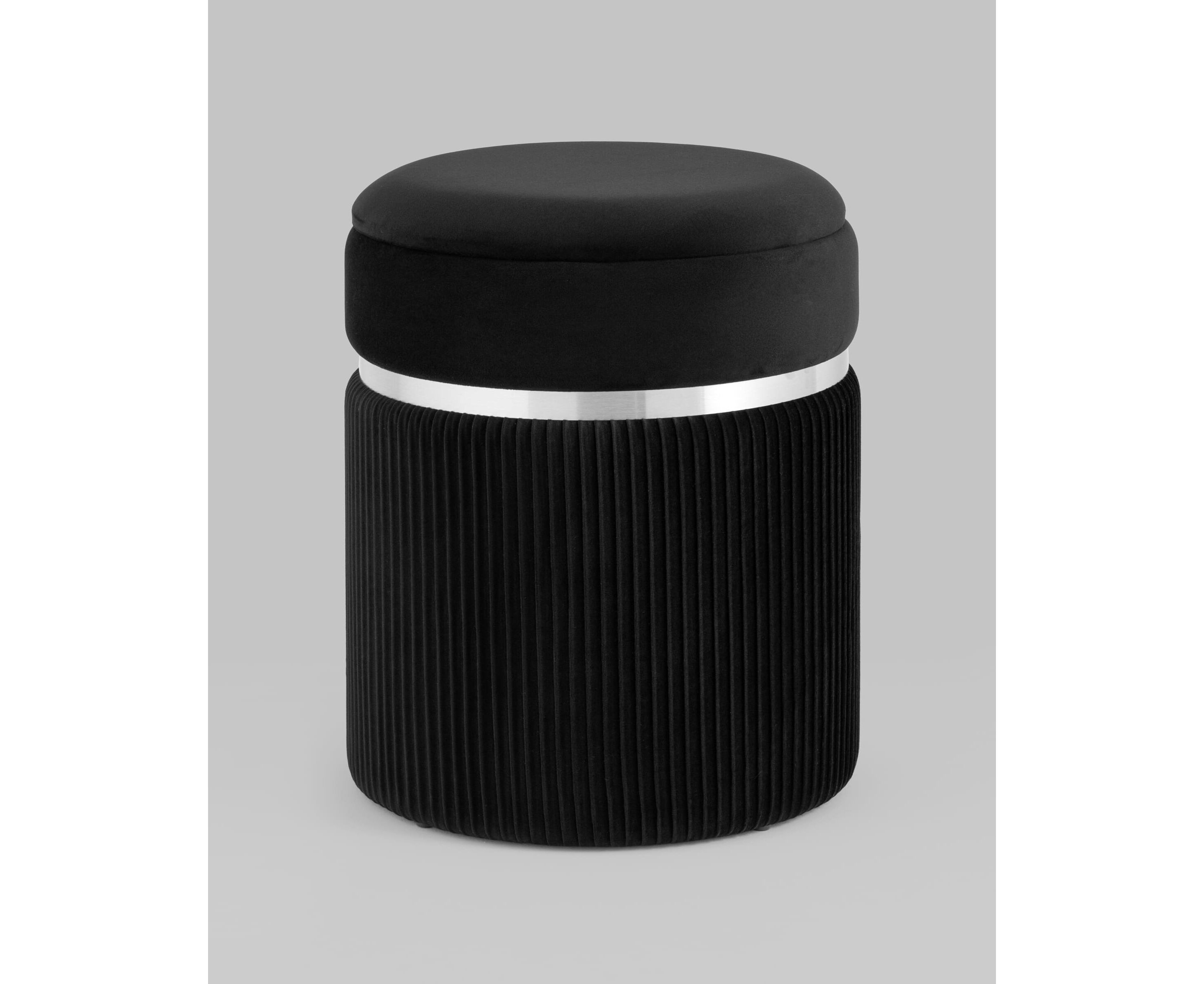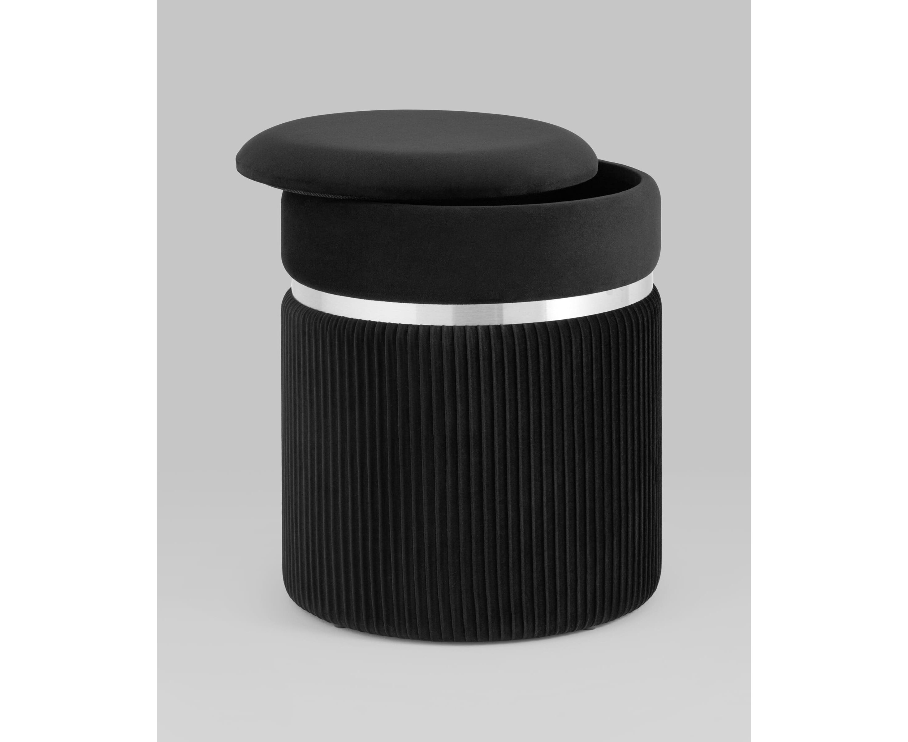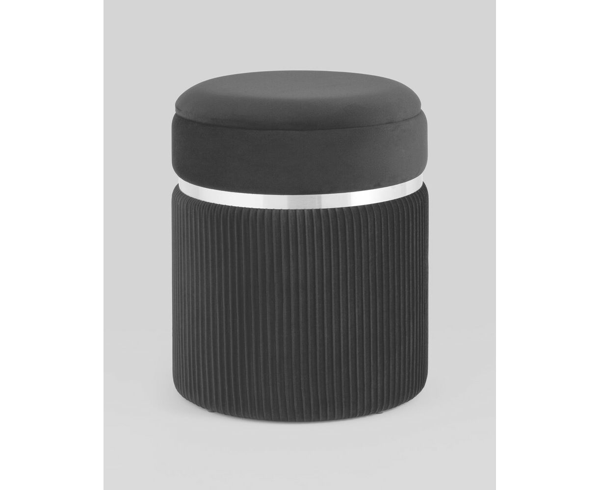 Пуф Миранда с ящиком серебро велюр черный с декоративным серебряным ободком