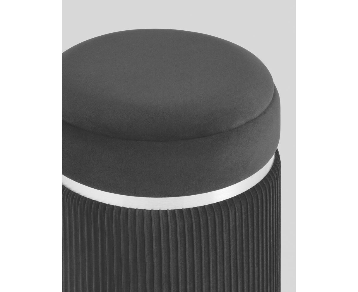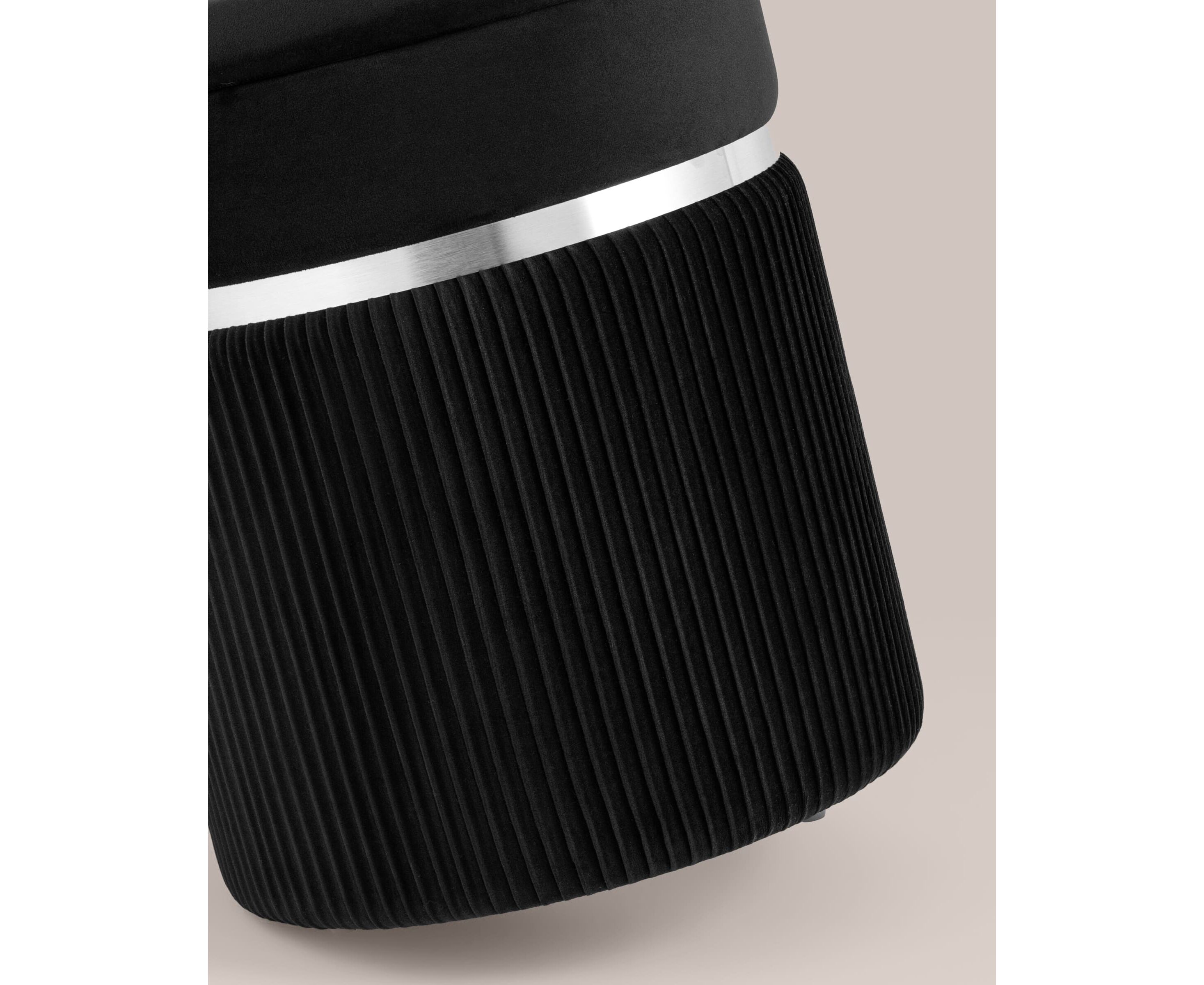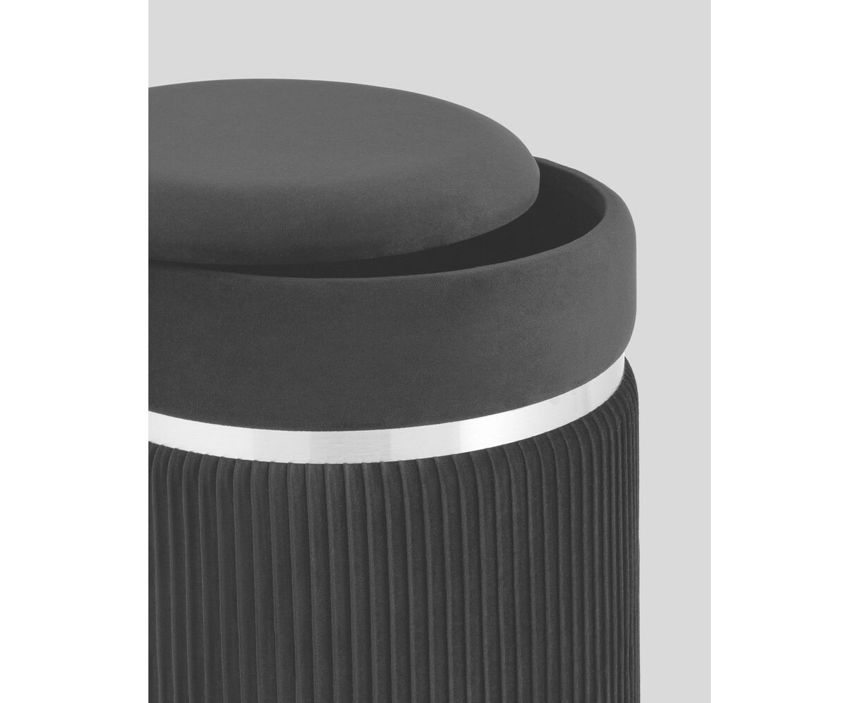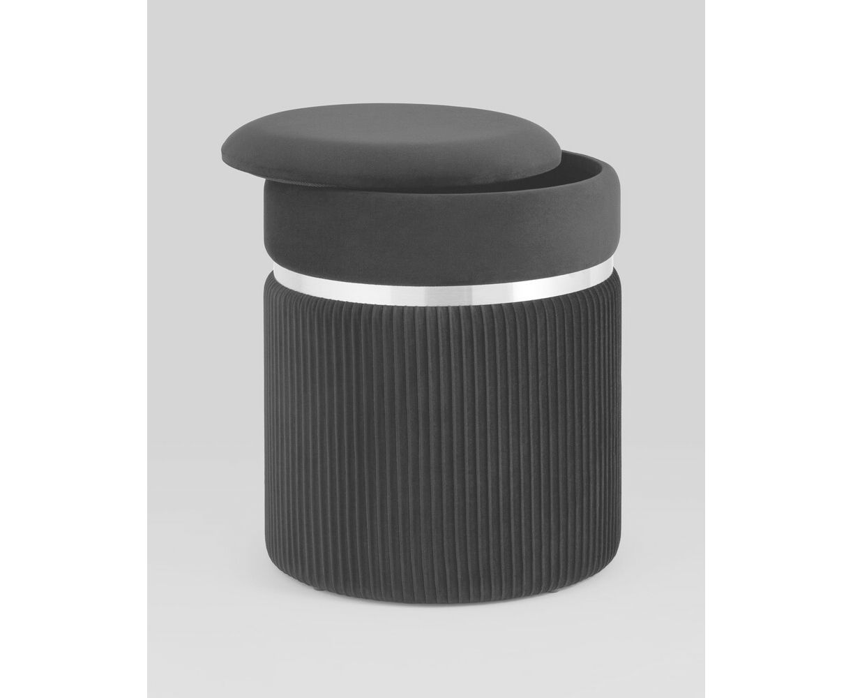 Пуф Миранда с ящиком серебро велюр черный с декоративным серебряным ободком