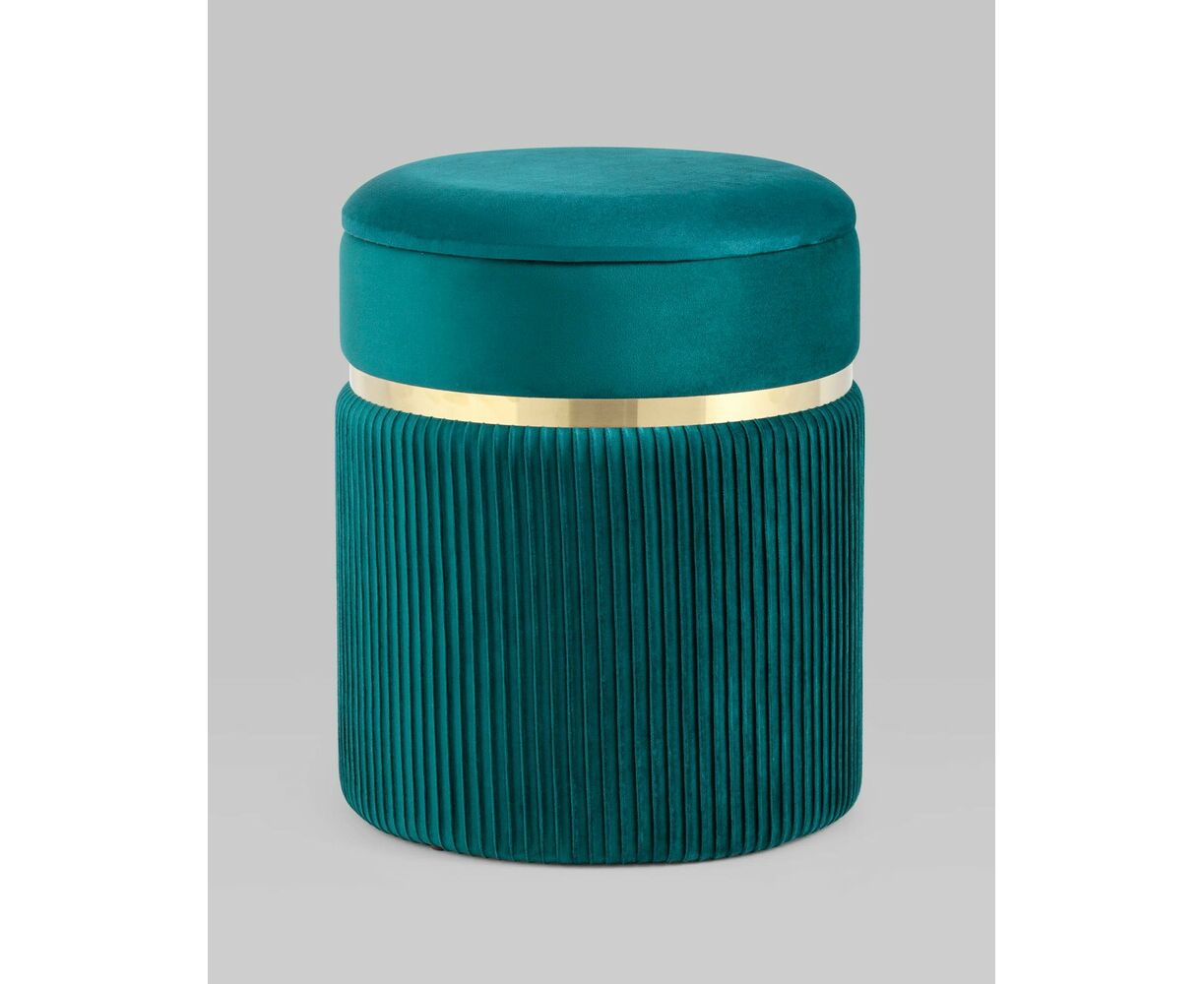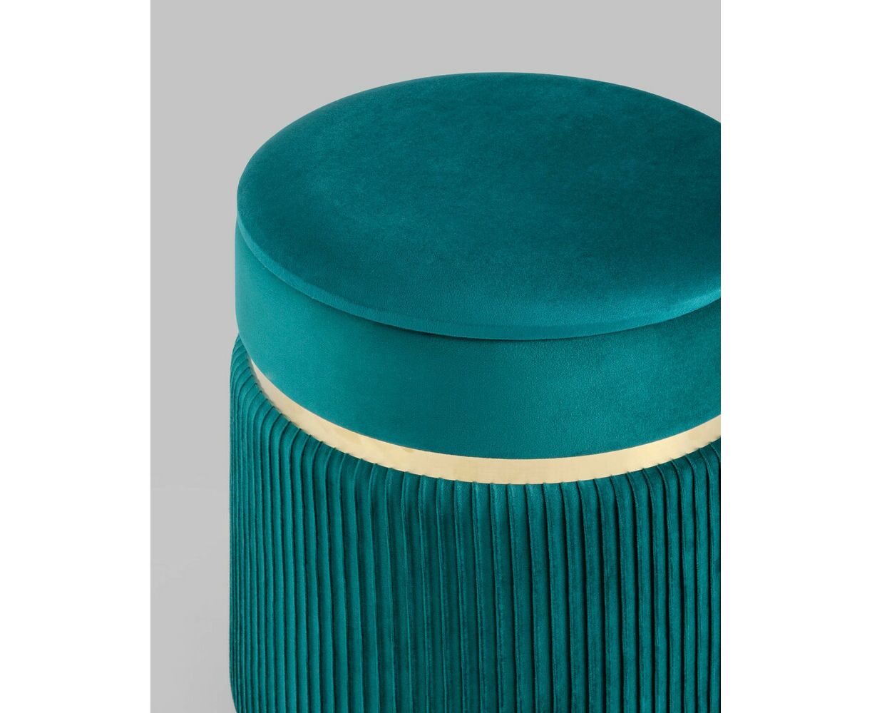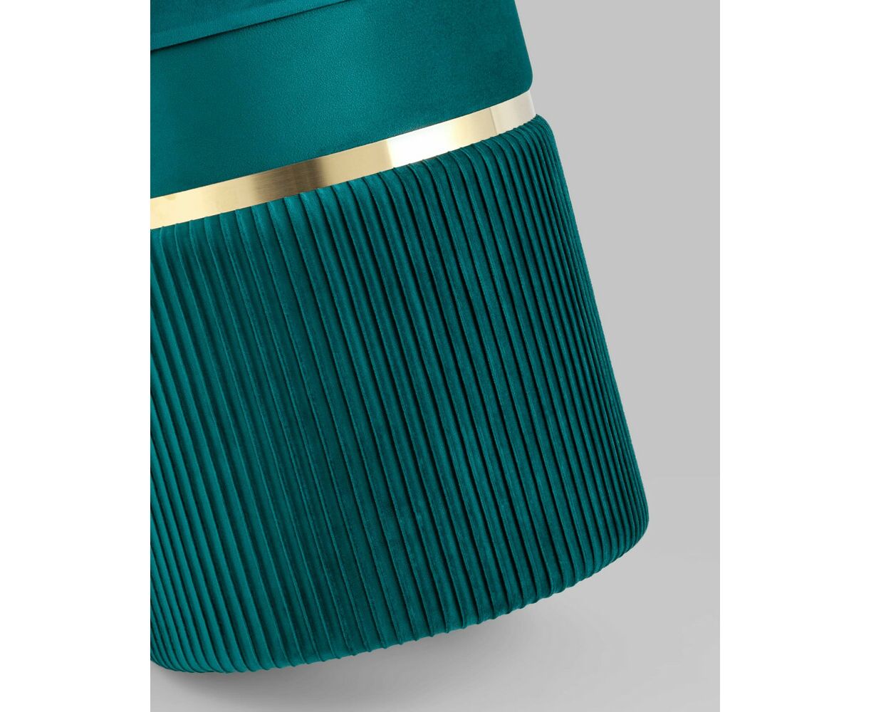 Лаконичная модель пуфа в обивке из мягкого велюра, которая дополнит интерьер вашего дома. Обивка красиво украшена декоративными оборками и металлическим ободком в золотом цвете. Под сиденьем имеется ящик для хранения различных мелочей. В основании предусмотрены специальные подпятники, которые делают пуф более устойчивым и предотвращают скольжение.