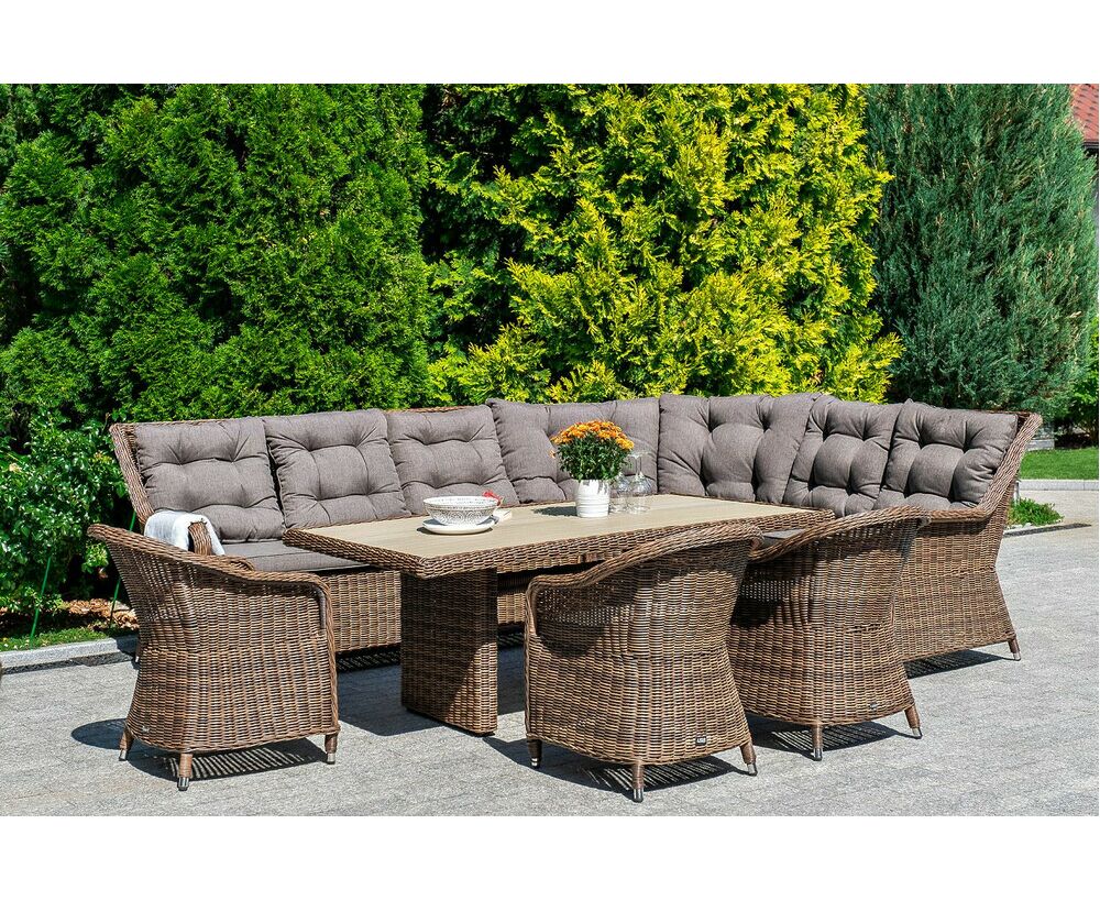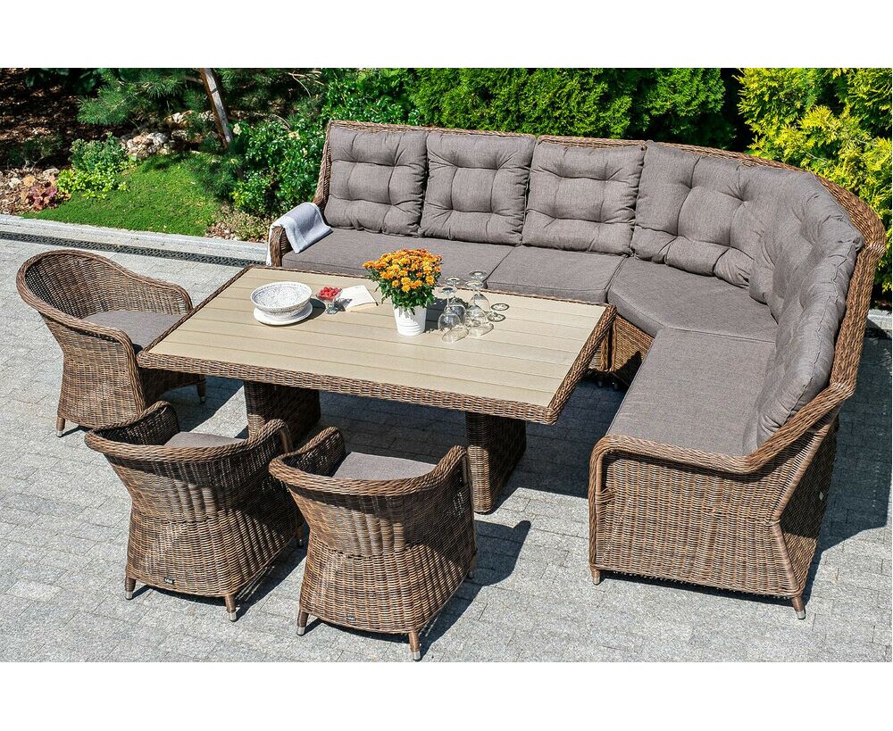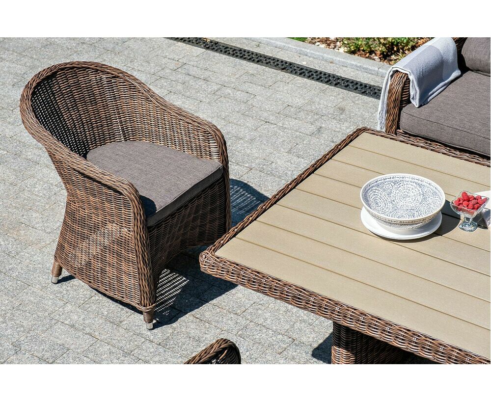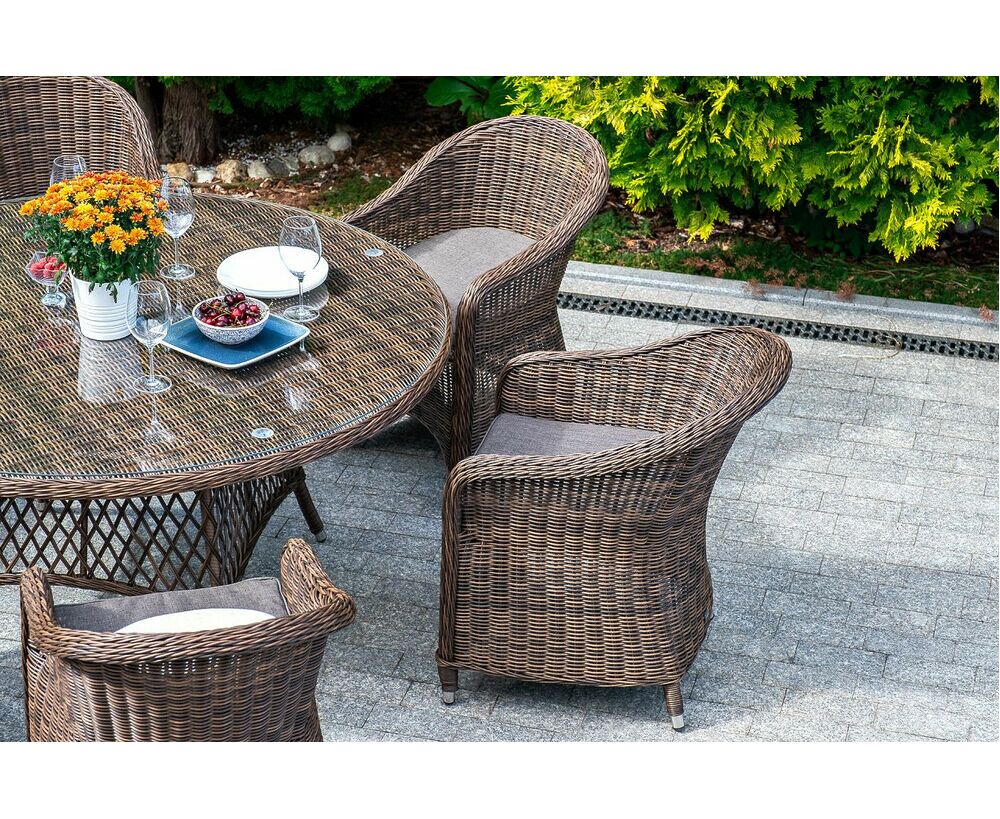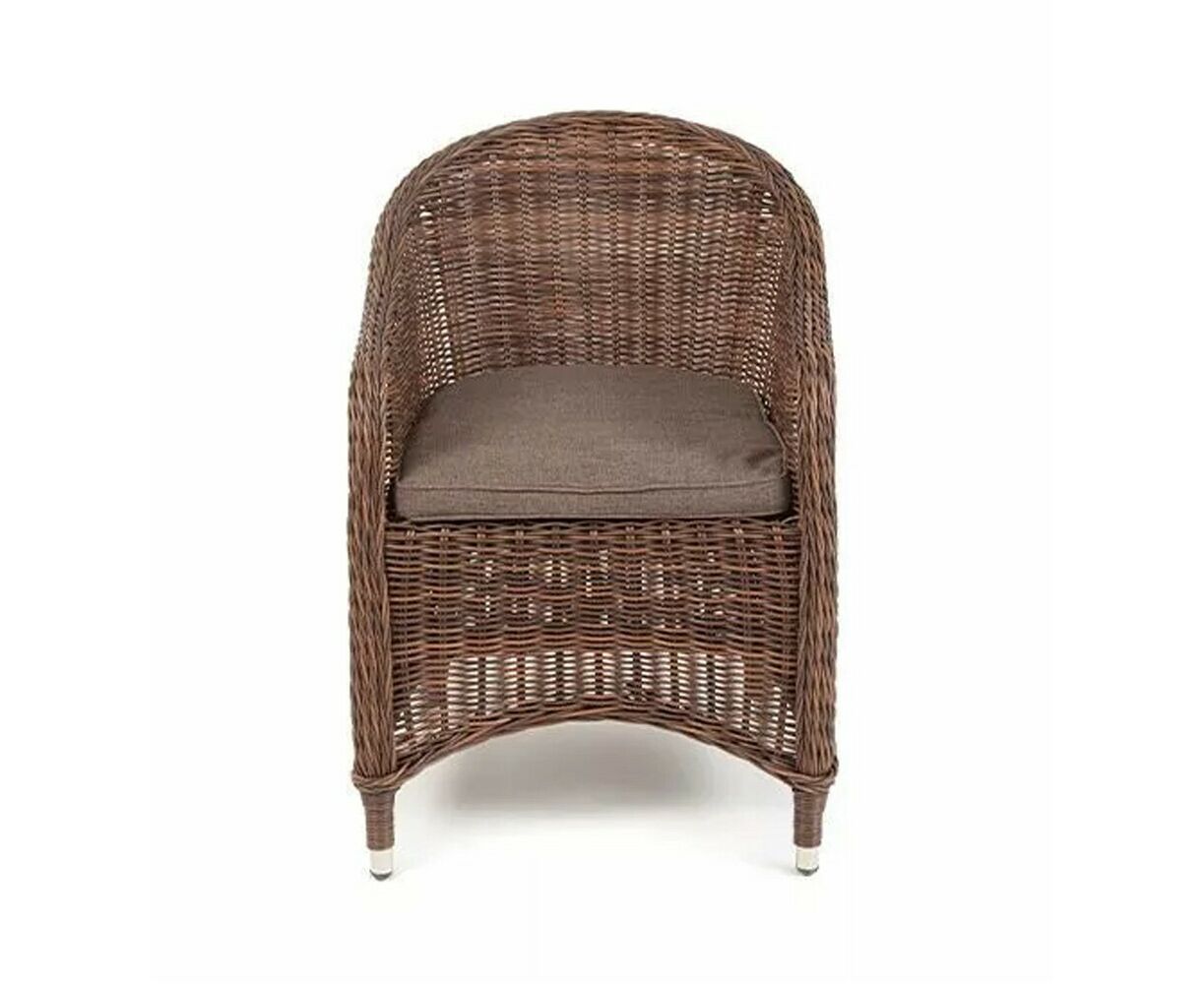 "Равенна" плетеное кресло из искусственного ротанга, цвет коричневый с серой подушкой