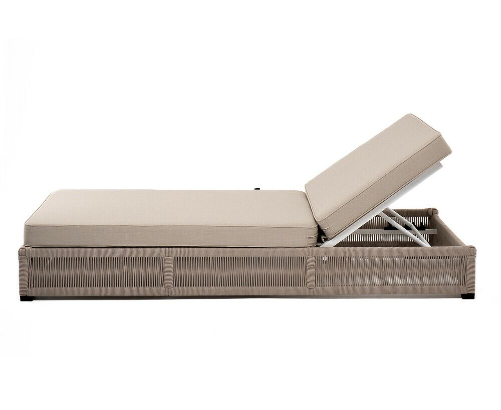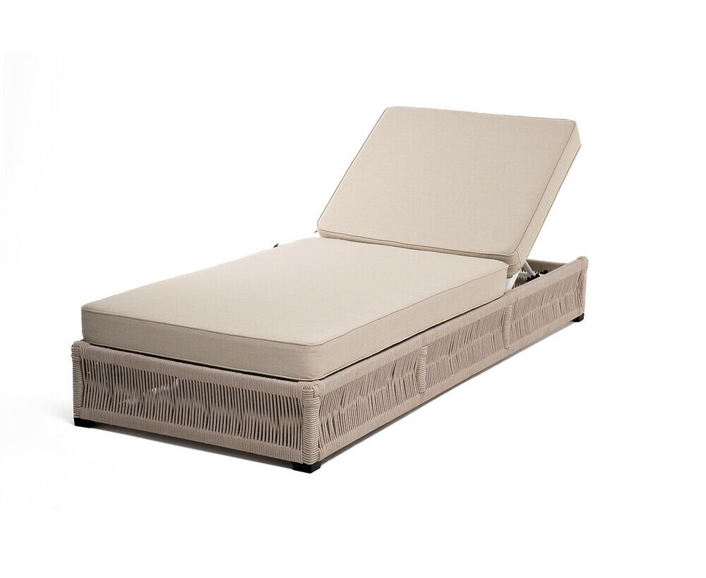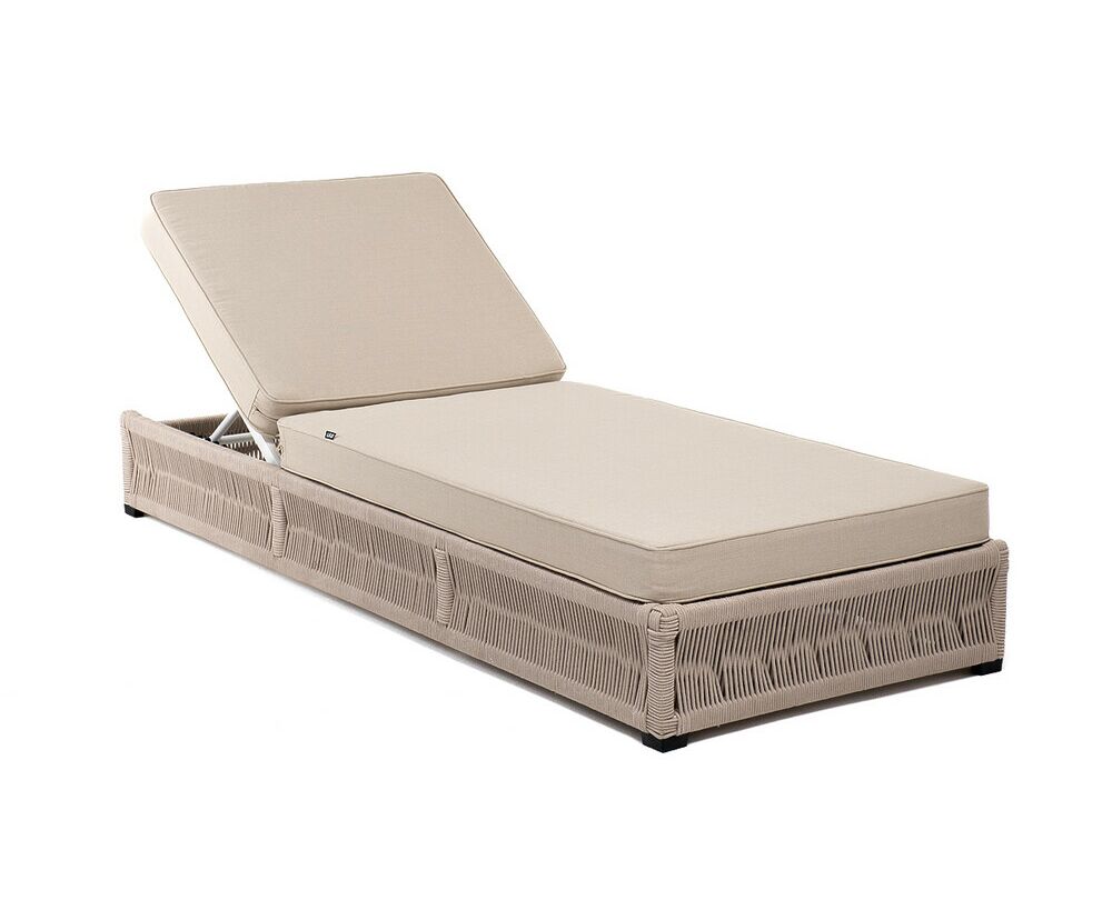 «Ривьера» плетеный шезлонг из роупа бежевого оттенка прекрасно дополнит пространство для отдыха на открытом воздухе.