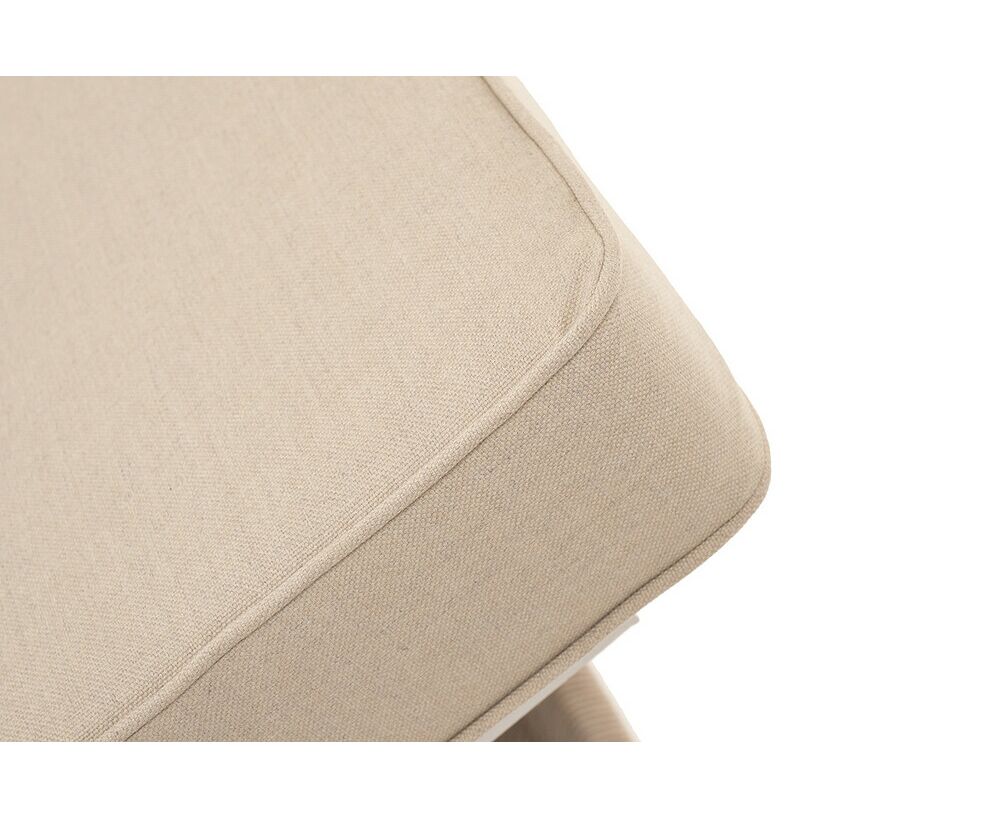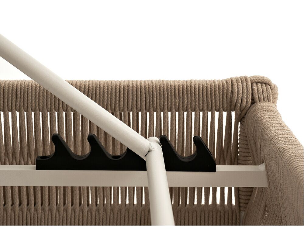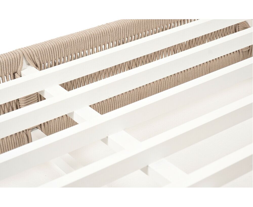 "Ривьера" шезлонг плетеный из роупа, каркас алюминий белый муар, роуп бежевый круглый, ткань бежевая 052